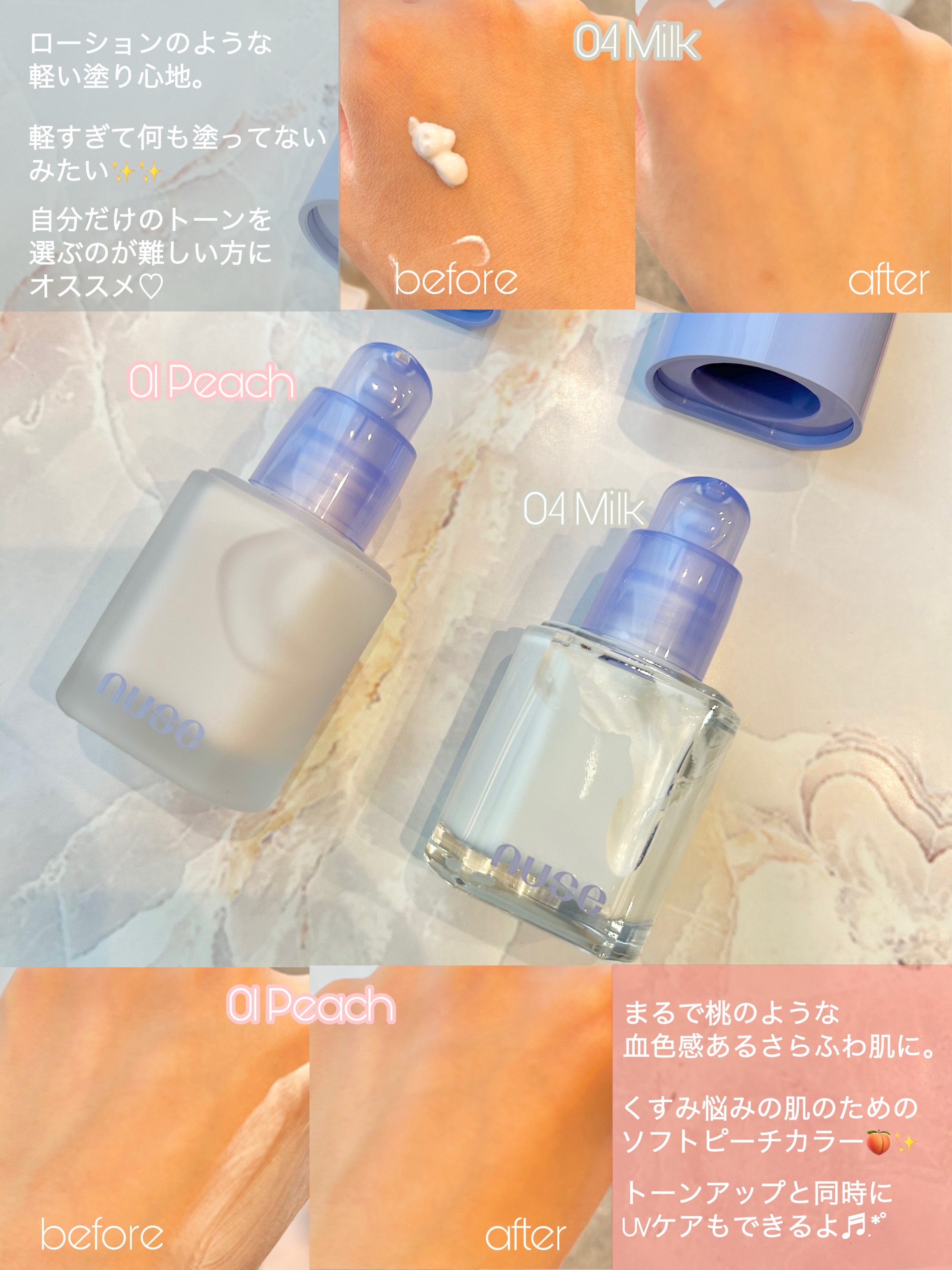 *nuseさまからいただきましたnuseケアトーンアップ。ロムアンドの姉妹ブランドnuse。ケアトーンアップは、メイクしながらスキンケアを楽しめます✨サボテンの芽、パンテノール3000ppmの水分保湿成分配合。【01ピーチ】SPF50+/PA...