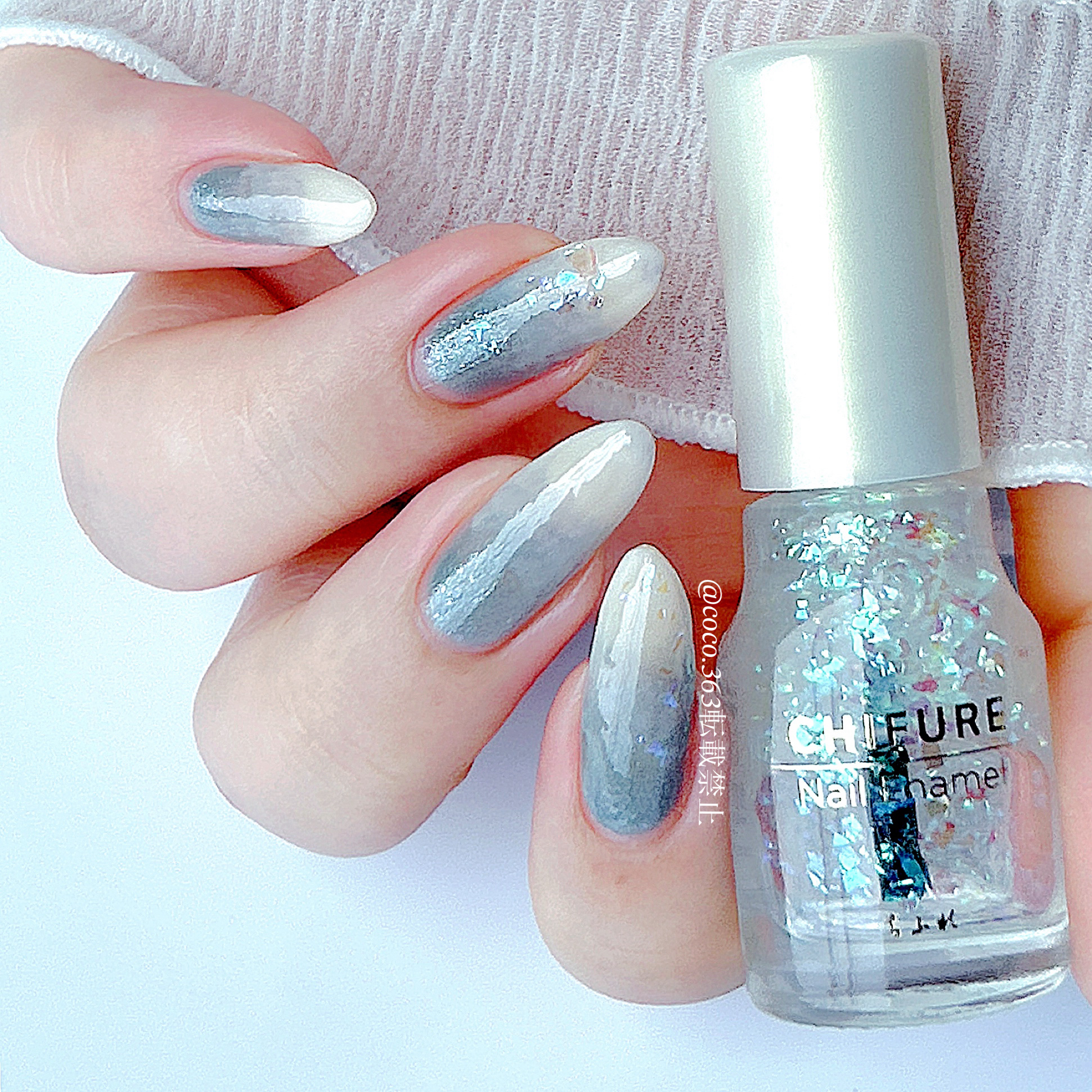 エアリーで透明感のあるN82 クラウドレススカイにちふれのシルバーラメを合わせると涼やかに𓂃◌𓈒𓐍 乱切りホロはあらかじめ小さめのものを選んでおきトップコートを2度塗りするとホロが取れにくくなりおすすめです👌🏻 ガラスフレンチ 透明感ネイル 青ネイル