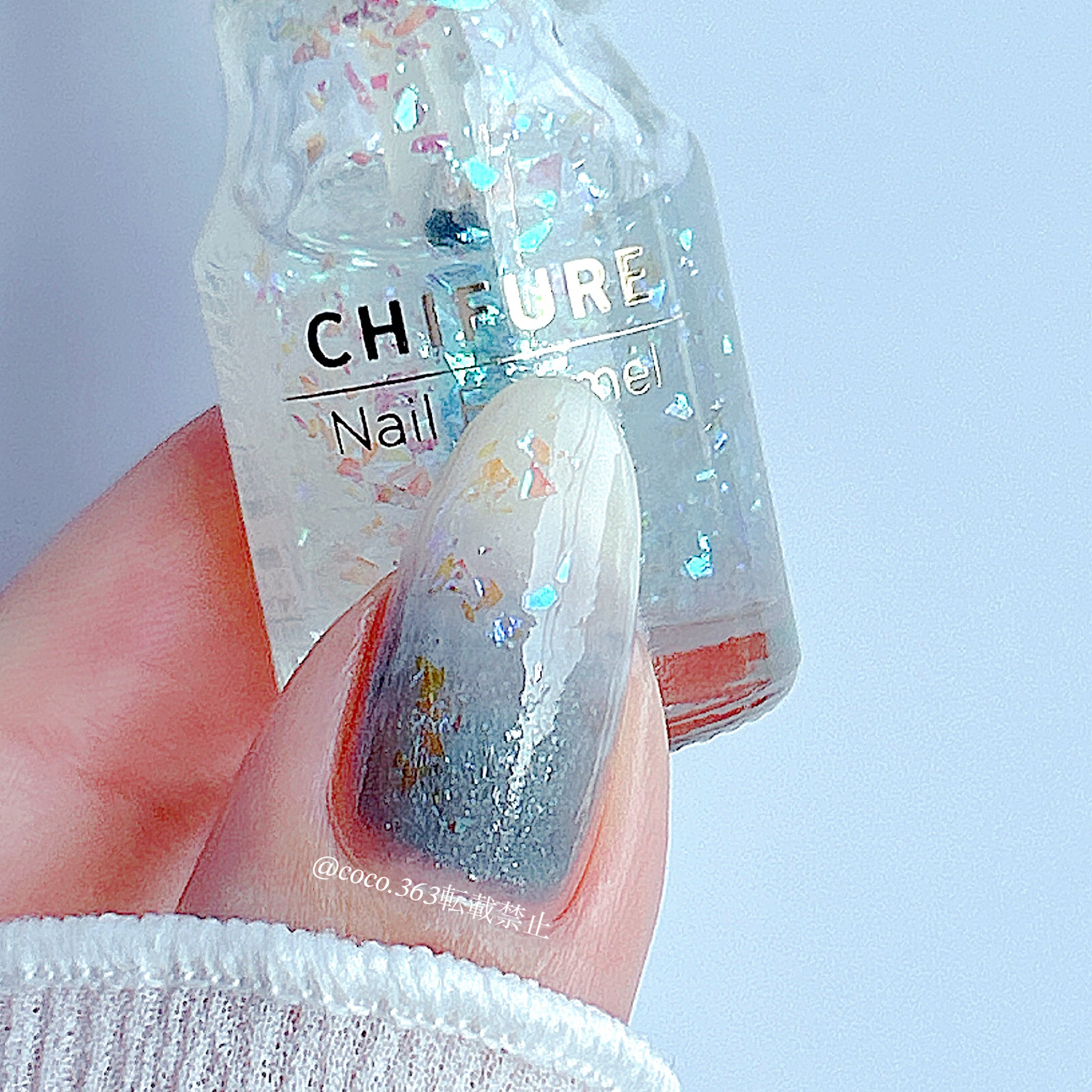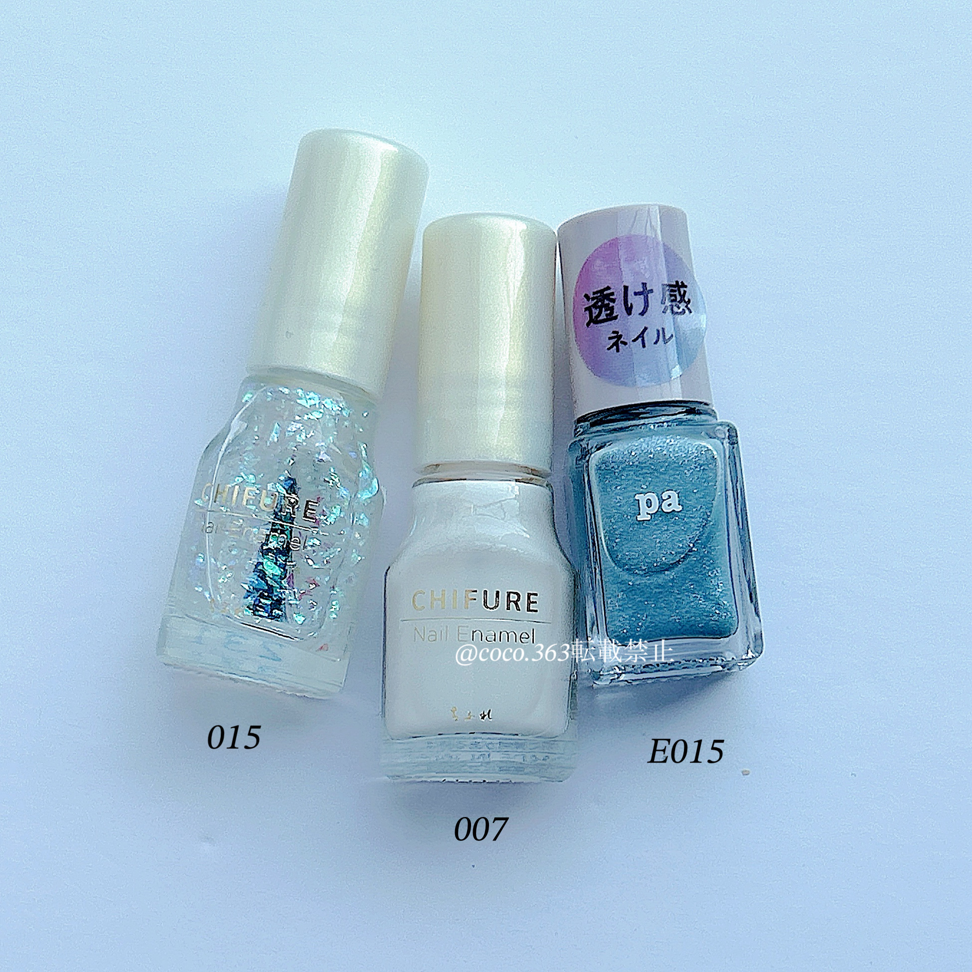 - <002 透明ラメ> 着色成分 (PET/ポリメタクリル酸メチル)ラミネート 適量 〃 ホウケイ酸(Ca/Al) 適量 〃 酸化チタン 適量 〃 グンジョウ 適量 〃 黄4 適量 〃 赤202 適量 〃 酸化鉄 適量 〃 コンジョウ 適量 〃 酸化スズ 適量 〃 紫201 適量 皮膜形成成分 ニトロセルロース 14.09% 〃 (無水フタル酸/無水トリメリト酸/グリコールズ)コポリマー 5.75% 〃 (アジピン酸/ネオペンチルグリコール/無水トリメリト酸)コポリマー 適量 保湿成分 パンテノール 適量 油性エモリエント成分 ジ安息香酸DPG 適量 可塑剤 クエン酸アセチルトリブチル 7.36% 分散剤 シリカ 2.46% 表面処理剤 水酸化Al 適量 〃 トリエトキシカプリリルシラン 適量 〃 メチコン 適量 増粘剤 ステアラルコニウムベントナイト 適量 溶剤 酢酸エチル 12.32% 〃 イソプロパノール 6.04% 〃 ブタノール 1.71% 基剤 酢酸ブチル 全量を100%とする <003 シルバー系ラメ> 着色成分 PET 適量 〃 (PET/ポリメタクリル酸メチル)ラミネート 適量 〃 ポリウレタン-11 適量 〃 Al 適量 〃 酸化チタン 適量 〃 黄4 適量 〃 赤202 適量 〃 酸化鉄 適量 〃 コンジョウ 適量 〃 紫201 適量 皮膜形成成分 ニトロセルロース 13.33% 〃 (無水フタル酸/無水トリメリト酸/グリコールズ)コポリマー 5.44% 〃 (アジピン酸/ネオペンチルグリコール/無水トリメリト酸)コポリマー 適量 保湿成分 パンテノール 適量 油性エモリエント成分 ジ安息香酸DPG 適量 可塑剤 クエン酸アセチルトリブチル 6.97% 分散剤 安息香酸スクロース 4.00% 〃 シリカ 2.33% 退色防止剤 メトキシケイヒ酸エチルヘキシル 1.00% 成分の酸化防止剤 BHT 適量 増粘剤 ステアラルコニウムベントナイト 適量 表面処理剤 水酸化Al 適量 〃 メチコン 適量 〃 トリエトキシカプリリルシラン 適量 溶剤 酢酸エチル 11.66% 〃 イソプロパノール 5.71% 〃 ブタノール 1.61% 基剤 酢酸ブチル 全量を100%とする <004 ゴールド系ラメ> 着色成分 (PET/Al)ラミネート 適量 〃 PET 適量 〃 (PET/ポリメタクリル酸メチル)ラミネート 適量 〃 黄4 適量 〃 ポリウレタン-11 適量 〃 赤202 適量 〃 Al 適量 〃 酸化チタン 適量 〃 酸化鉄 適量 〃 コンジョウ 適量 〃 紫201 適量 皮膜形成成分 ニトロセルロース 13.53% 〃 (無水フタル酸/無水トリメリト酸/グリコールズ)コポリマー 5.52% 〃 (アジピン酸/ネオペンチルグリコール/無水トリメリト酸)コポリマー 適量 保湿成分 パンテノール 適量 油性エモリエント成分 ジ安息香酸DPG 適量 可塑剤 クエン酸アセチルトリブチル 7.07% 分散剤 安息香酸スクロース 4.00% 〃 シリカ 2.37% 退色防止剤 メトキシケイヒ酸エチルヘキシル 1.00% 成分の酸化防止剤 BHT 適量 増粘剤 ステアラルコニウムベントナイト 適量 表面処理剤 水酸化Al 適量 〃 メチコン 適量 〃 トリエトキシカプリリルシラン 適量 溶剤 酢酸エチル 11.84% 〃 イソプロパノール 5.80% 〃 ブタノール 1.64% 基剤 酢酸ブチル 全量を100%とする <007 ホワイト系> 着色成分 酸化チタン 適量 〃 黄4 適量 〃 赤202 適量 〃 酸化鉄 適量 〃 赤201 適量 〃 硫酸Ba 適量 〃 コンジョウ 適量 皮膜形成成分 ニトロセルロース 12.92% 〃 (無水フタル酸/無水トリメリト酸/グリコールズ)コポリマー 6.99% 〃 (アジピン酸/フマル酸/フタル酸/トリシクロデカンジメタノール)コポリマー 1.16% 〃 アクリル酸アルキルコポリマー 適量 保湿成分 パンテノール 適量 可塑剤 クエン酸アセチルトリブチル 7.80% 〃 クエン酸 0.02% 増粘剤 ステアラルコニウムヘクトライト 1.34% 粘度調整剤 ジメチコン 適量 〃 ジ(C12-15)パレス-2リン酸 適量 溶剤 酢酸エチル 20.13% 〃 イソプロパノール 5.61% 基剤 酢酸ブチル 全量を100%とする <014 透明ラメ> 着色成分 (PET/ポリメタクリル酸メチル)ラミネート 適量 〃 酸化チタン 適量 〃 黄4 適量 〃 赤202 適量 〃 酸化鉄 適量 〃 赤201 適量 〃 硫酸Ba 適量 〃 コンジョウ 適量 〃 紫201 適量 皮膜形成成分 ニトロセルロース 13.98% 〃 (無水フタル酸/無水トリメリト酸/グリコールズ)コポリマー 5.71% 〃 アクリル酸アルキルコポリマー 適量 保湿成分 パンテノール 適量 可塑剤 クエン酸アセチルトリブチル 7.30% 分散剤 シリカ 2.44% 〃 安息香酸スクロース 2.00% 増粘剤 ステアラルコニウムヘクトライト 適量 溶剤 酢酸エチル 12.22% 〃 イソプロパノール 5.99% 〃 ブタノール 1.69% 基剤 酢酸ブチル 全量を100%とする <015 透明ラメ> 着色成分 (PET/ポリメタクリル酸メチル)ラミネート 適量 〃 酸化チタン 適量 〃 黄4 適量 〃 赤202 適量 〃 酸化鉄 適量 〃 赤201 適量 〃 硫酸Ba 適量 〃 コンジョウ 適量 〃 紫201 適量 皮膜形成成分 ニトロセルロース 13.98% 〃 (無水フタル酸/無水トリメリト酸/グリコールズ)コポリマー 5.71% 〃 アクリル酸アルキルコポリマー 適量 保湿成分 パンテノール 適量 可塑剤 クエン酸アセチルトリブチル 7.30% 分散剤 シリカ 2.44% 〃 安息香酸スクロース 2.00% 増粘剤 ステアラルコニウムヘクトライト 適量 溶剤 酢酸エチル 12.22% 〃 イソプロパノール 5.99% 〃 ブタノール 1.69% 基剤 酢酸ブチル 全量を100%とする <016 カラフルラメ> 酢酸ブチル, ニトロセルロース, 酢酸エチル, クエン酸ア