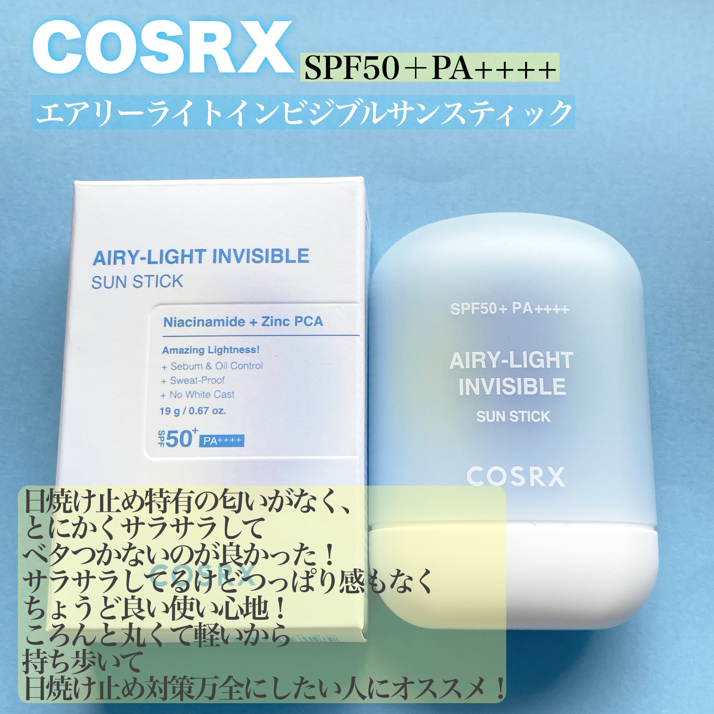 cosrx様よりモニターにていただきました。COSRXエアリーライトインビジブルサンスティックスティック型の日焼け止めなんですが、テクスチャーがさらっとしていて軽いです!サイズも小さいのでポーチにも入れやすくて嬉しいです😊#PR#COSRX#...