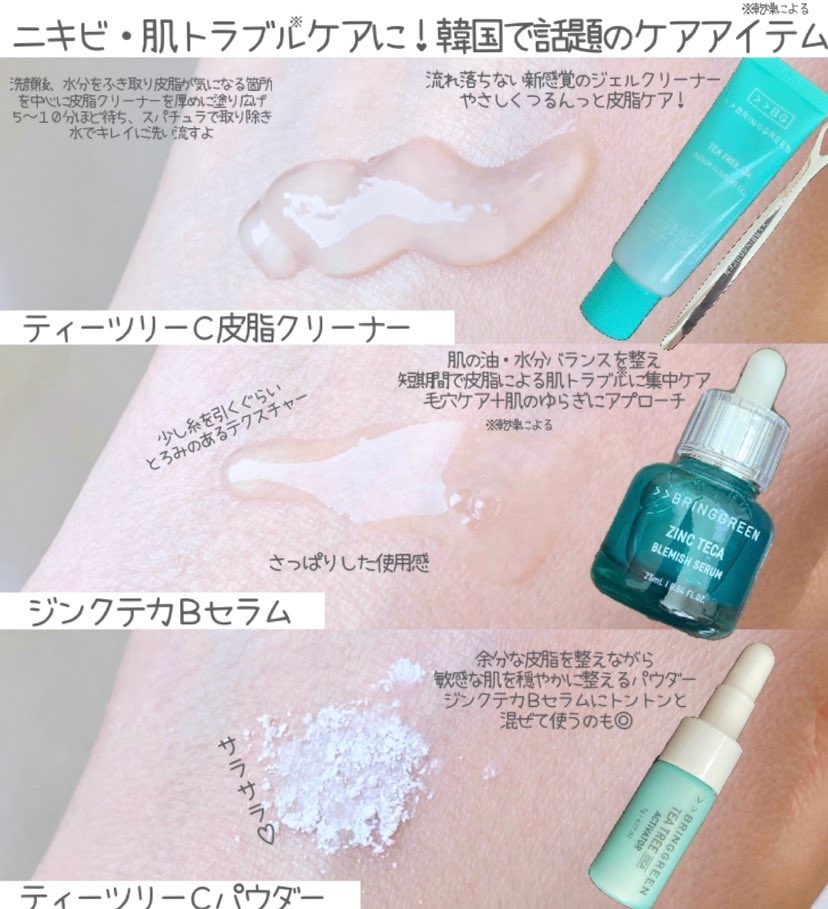 オリヤンで人気!話題のニキビケアアイテムが日本に上陸!韓国の人気アイテムがなんとロフトで買えるんだって!ブリングリーン・ジンクテカBセラムセット(ジンクテカBセラム25ml、ティーツリーCパウダー2g)・ティーツリーC皮脂クリーナージンクテカ...