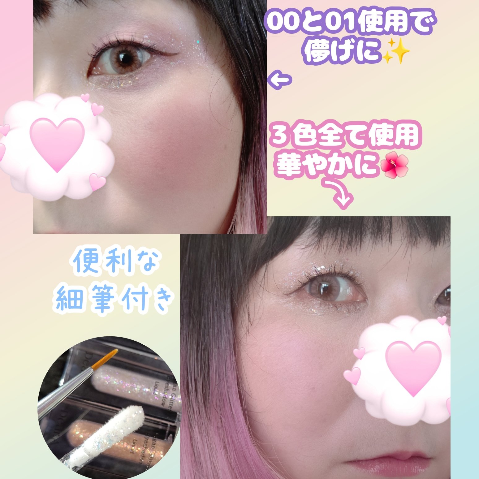 @dear.a_japan_officialさまよりいただきました🎀··🤍Dear.A🤍✔️VeganGlitterEyeshadow🤍00heaven🩷01mauve🧡02sunbeam··💎ガラスのような透明感のある光沢&カラー💫その日の...