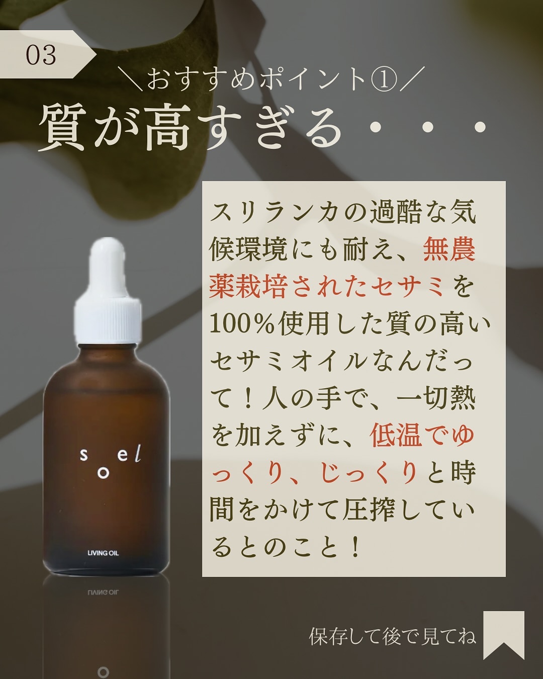 soel LIVING-OIL オーガニックセサミオイルの効果に関する口コミ - 混合肌におすすめのフェイスオイル!@hana.skincare._👈素肌をキレイにする混合肌スキンケア