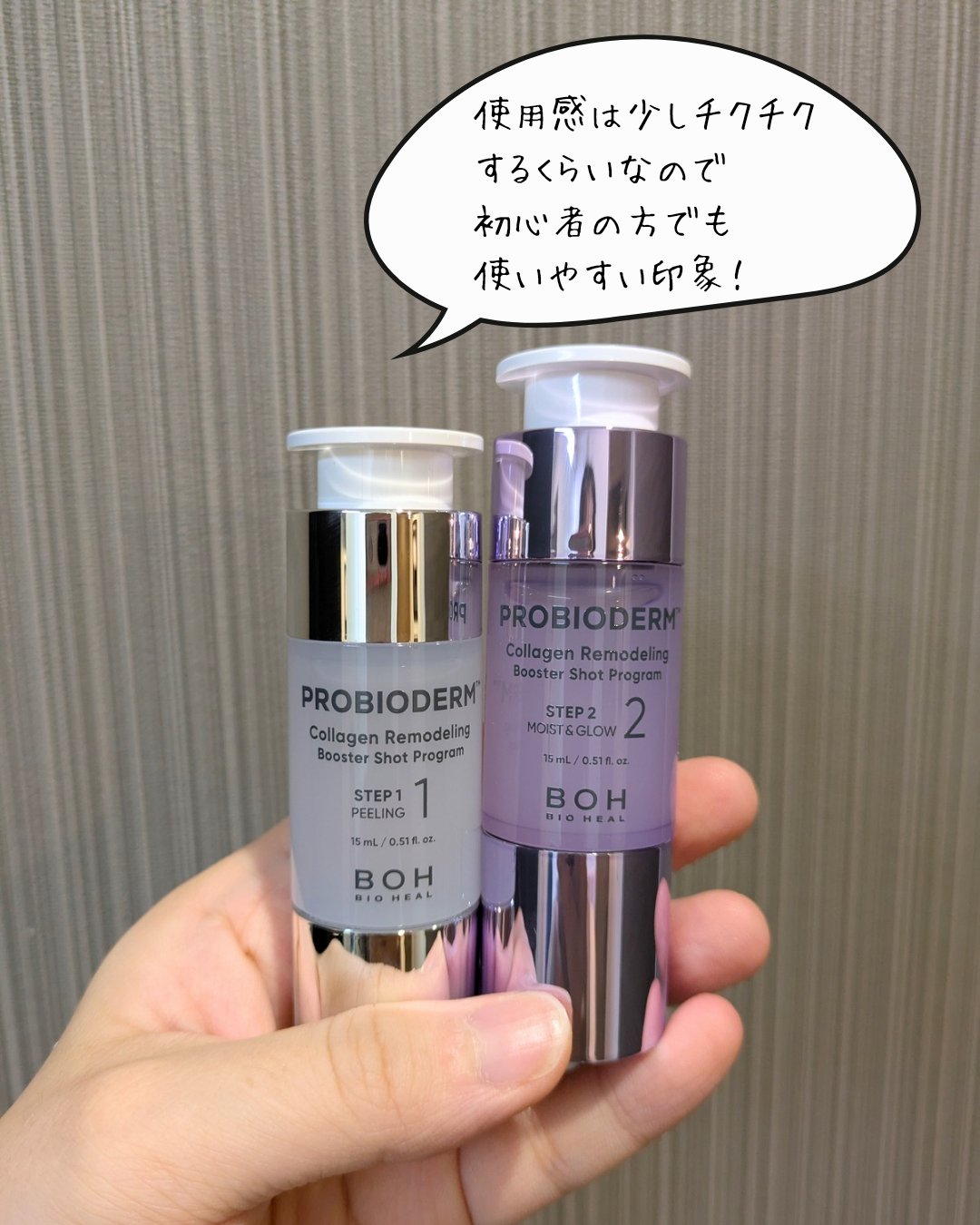 BIOHEALBOHプロバイオダーム(TM)コラーゲンリモデリングブースターショットプログラム*2STEPて使う美容液!うるおい不足による毛穴*2の目立ちや、お肌のごわつきが気になる方にオススメだよ!*1つ目はニードルタイプでしっかりピリピリ...