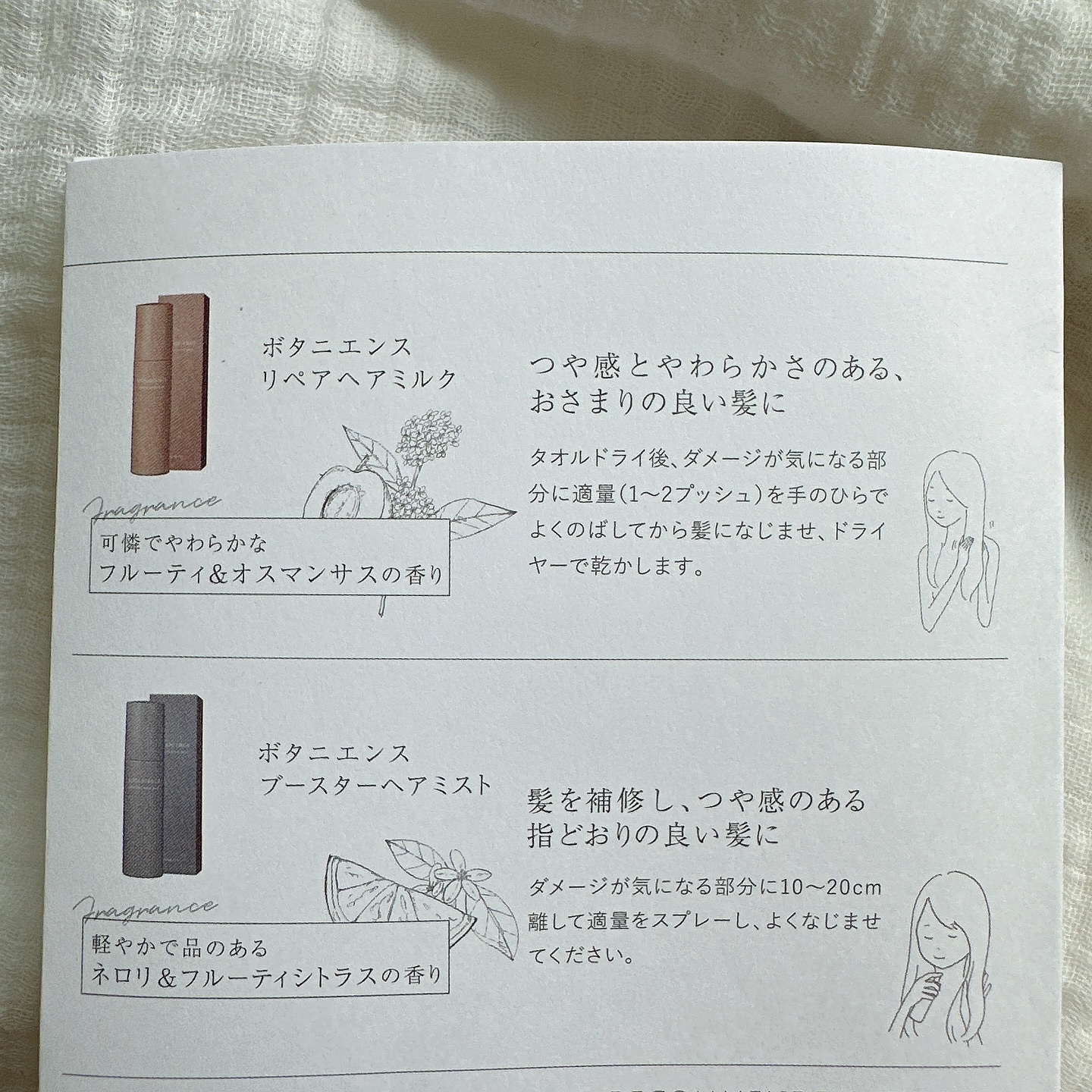 🕊️🍀ボタニエンスリペアヘアミルク3,740円(税込)ボタニエンスブースターヘアミスト3,190円(税込)お試ししてみました🐰💚髪の悩みと向き合う、美容室専売のボタニエンススタイリング&ヘアケアシリーズです💡髪を補修し、おさまりの良いやわらか...