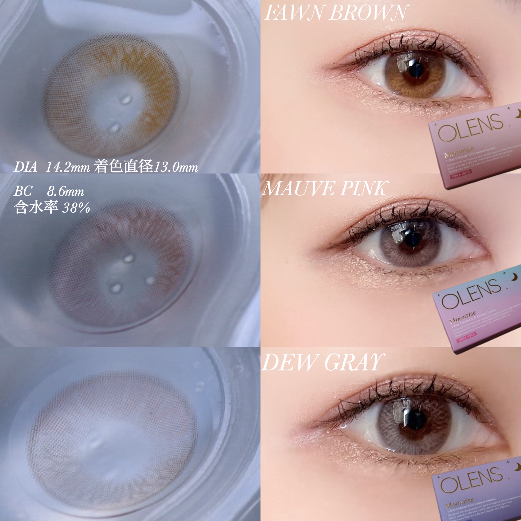 🌙NEW✨OLENSムーンライズ🌙まるでお月さまを映したみたいな水光カラコンに新色登場✧˖°うるっとツヤめく目元で「#水光メイク」が完成する3色のときめきグラデーション💕✦MauvePink(モーブピンク)ꕀᴺᴱᵂ⋆✦DewGray(デューグ...