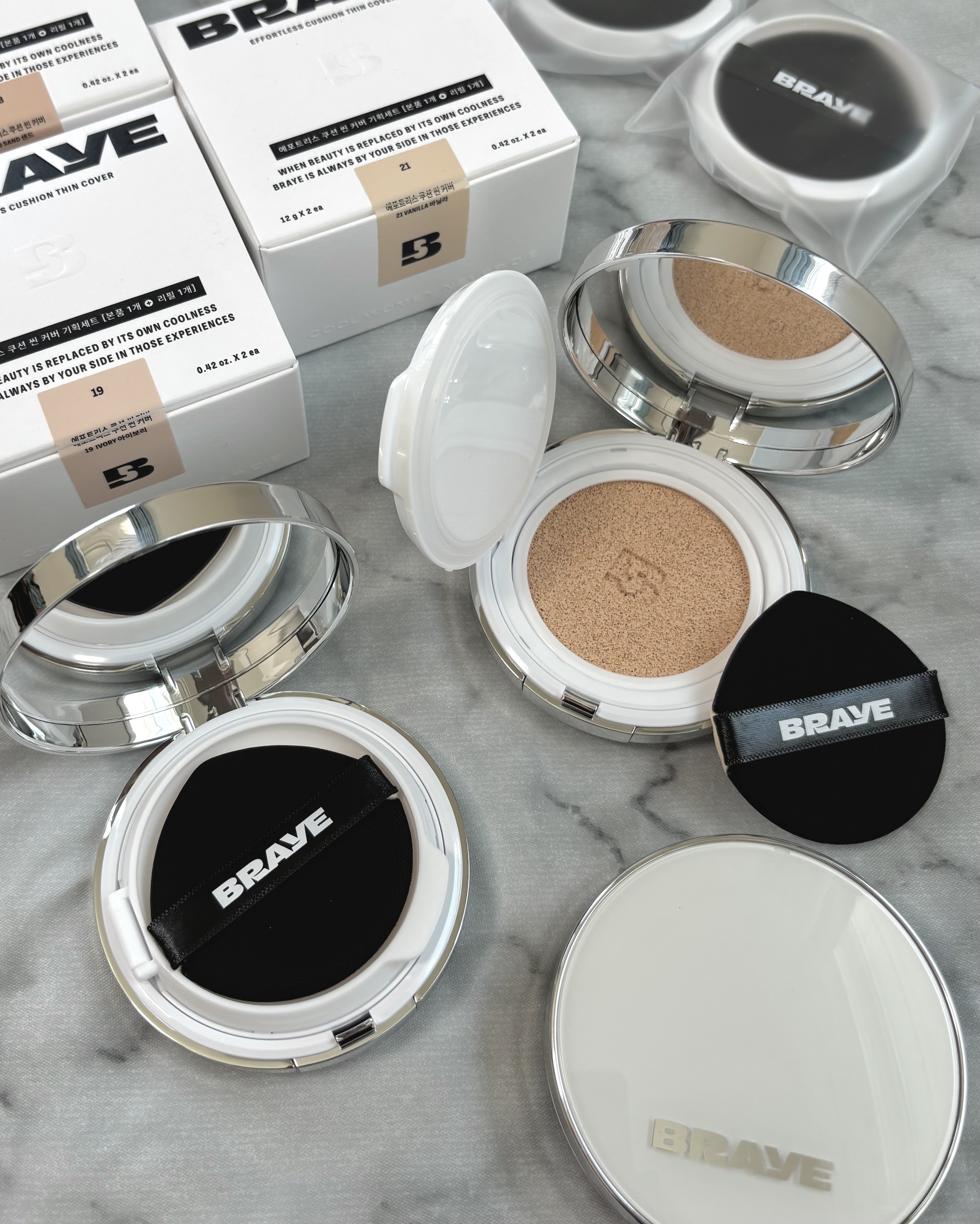 ▶︎▶︎エフォートレスクッションシンカバー21号バニラ箱を開けてまず驚いたのがリフィル付きという点‼︎次があると思うと安心して使えます♡BRAYEらしいシンプルかつおしゃれなケースに雫型の可愛いパフが入っており、厚塗り感はないのにカバー力が高...