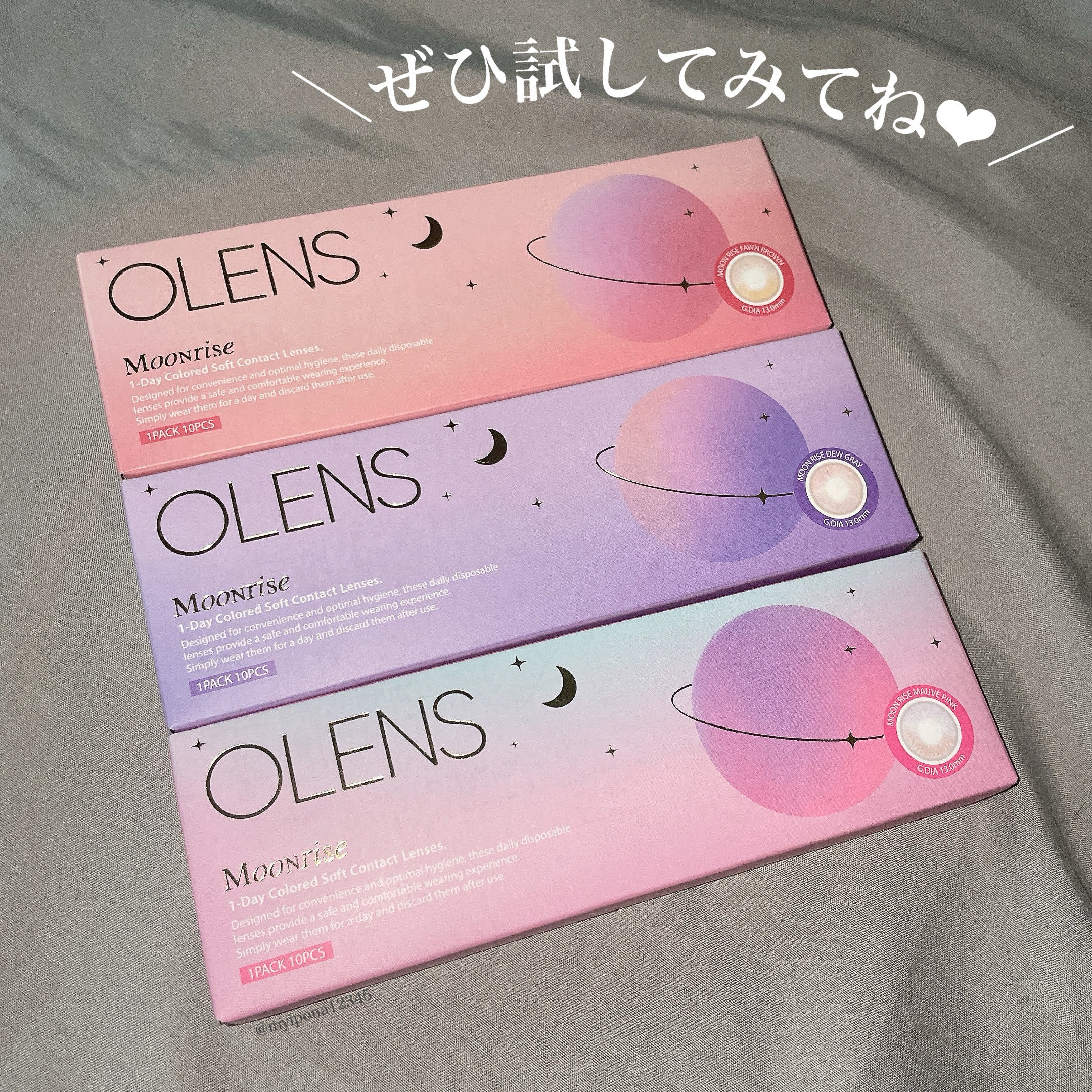 👀OLENS水光カラコンに新色登場🌙MoonriseFawnBrown/MauvePink/DewGray1day(1箱10枚入)DIA14.2mm着色直径13.0mm含水率38%グラデーションになったハイライトで、まるで月が瞳に映ったような...