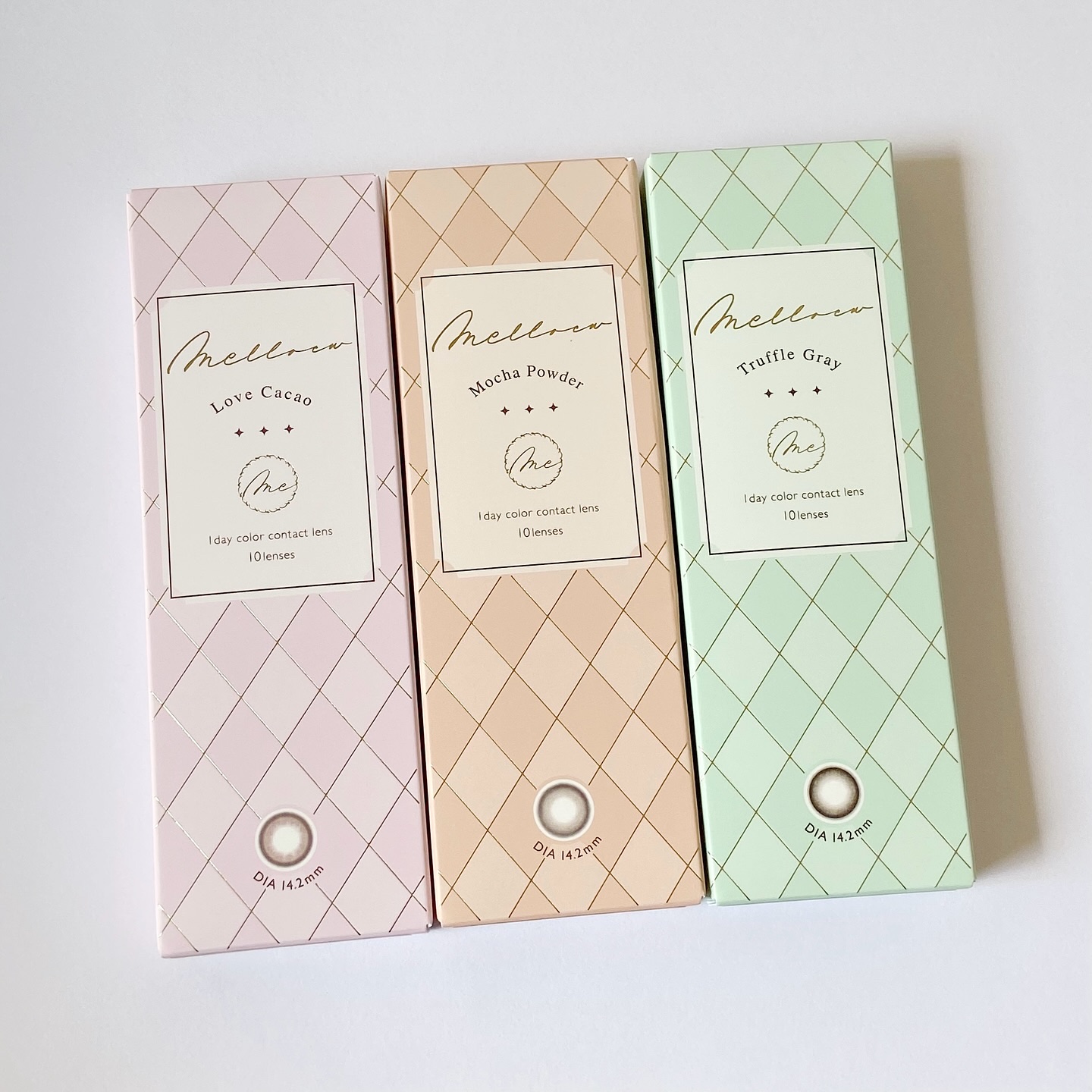- ※2025年6月以降、商品パッケージ裏面・側面の一部表記を順次変更いたします。尚、これにかかる商品の交換・返品は承っておりません。 ふわっと漂う多幸感 キラキラとした瞳 そんな多くの人が憧れる印象はmelloewで作れる! 王道盛れからあざと盛れまでどんな盛れも叶うラインナップで瞳をコーディネート☆ Cotton Ring(コットンリング) DIA14.2㎜/着色直径13.5㎜ 溶け込みベージュ×くっきりフチ 写真でもリアルでも盛れちゃう♪ Silky Pearl(シルキーパール) DIA14.2㎜/着色直径13.5㎜ ツヤっぽベージュ×細フチ 垢抜けた印象にしたい方におすすめ♪ Truffle Gray(トリュフグレー) DIA14.2㎜/着色直径13.4㎜ おしゃれモテ♡ 濃いめグレージュ×ぼかし細フチ 品よく盛れるお嬢様な瞳に Pure Nude(ピュアヌード) DIA14.2㎜/着色直径13.2㎜ 絶妙ヌーディカラー×グラデフチ お仕事やカラコン初心者にもおすすめ♪ Brown Chou(ブラウンシュー) DIA14.2㎜/着色直径13.6㎜ まろやかブラウン×ぼかしフチ 日常使いにもおすすめ♪ Mocha Powder(モカパウダー) DIA14.2㎜/着色直径13.6㎜ リピ確モテ♡ ふわふわモカ×くりっとフチ 絶対盛れちゃう甘い瞳に Love Cacao(ラブカカオ) DIA14.2㎜/着色直径13.0㎜ 清楚モテ♡ とろふわチョコレート×こっそりフチ バレずに盛れちゃう瞳に カラーコンタクトレンズの不適正使用による眼障害の危険性等などがあります。 ●コンタクトレンズは高度管理医療機器です。不十分な洗浄・消毒など不適切なケアや、長時間・交換期間を超えた装用により、アレルギー性結膜炎、角膜感染症、角膜潰瘍等の重篤な眼障害が発生する危険性があります ●ご使用前に取扱説明書を確認してください 使用上の留意事項 ●眼科医院等を受診してからお求めください ●眼に異常を感じたら直ちにレンズ使用を中止し、お近くの眼科等で診察を受けてください ●医師の指示にしたがってご使用ください ●コンタクトレンズを装用する場合、自覚症状がなくても、眼科医院等での定期検査を受けてください ●レンズに不具合がある場合は使用しないでください