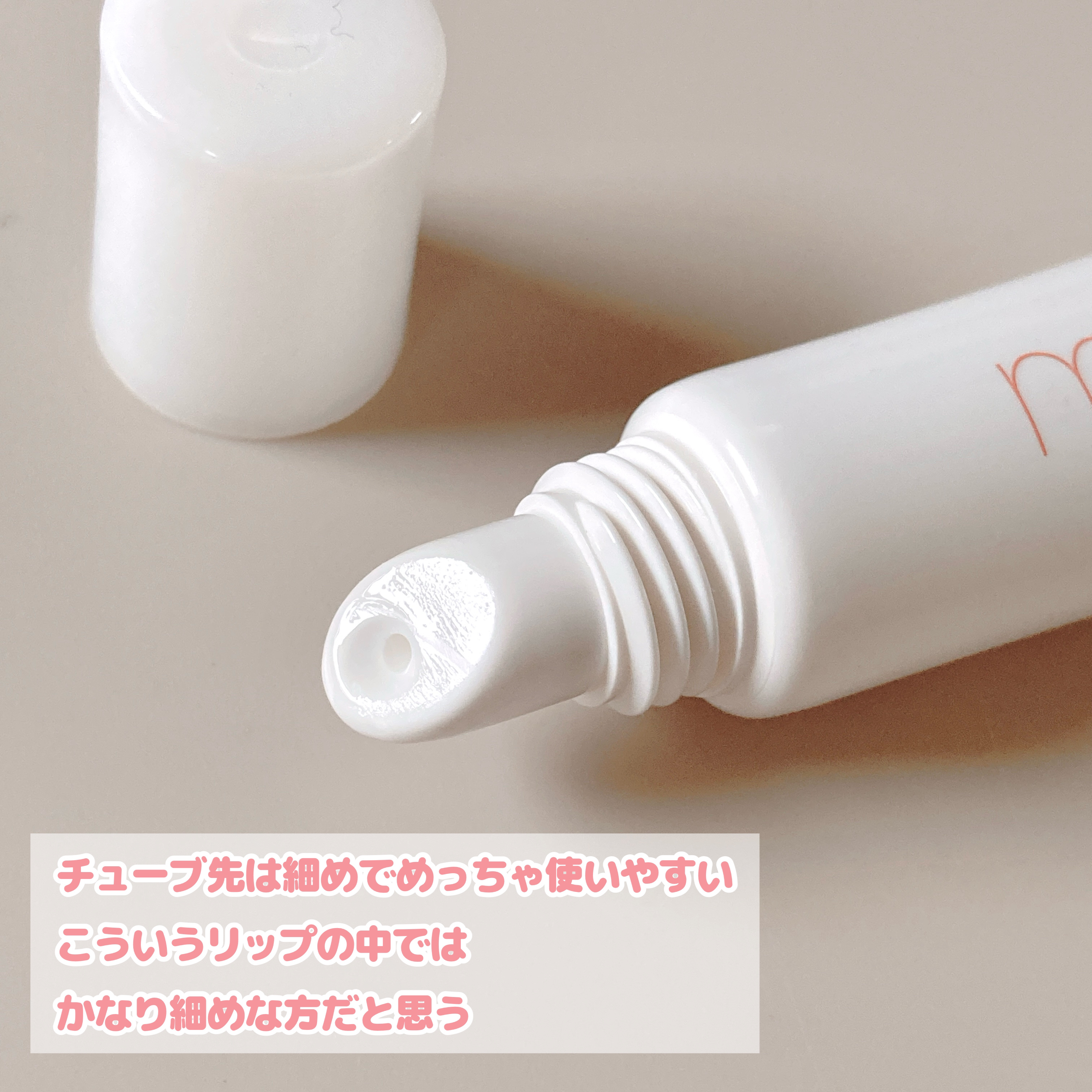【#muice/#オールデイケアリップ】唇用美容液だそう🫧美容液と考えると、浸透せず上に乗って膜を張ってるような使用イメージです。ぷくっと厚みのあるテクスチャーで垂れずに唇の上に留まってくれる使用感。保湿力はかなり有ると思いました◎思ったより...