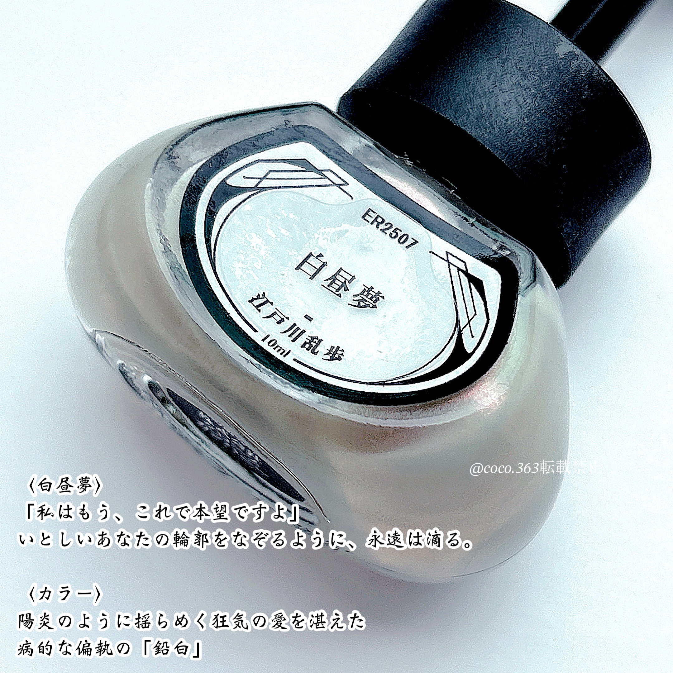 シアー感のあるラベンダーにグレーのヴェールをかけたような色合いへ偏光パールカラー。光の当たる角度で表情を変えるカラー。 アンティーク感溢れる本物の羽根付き。ボトルを並べてインテリアでコレクションしたくなるオシャレさです。