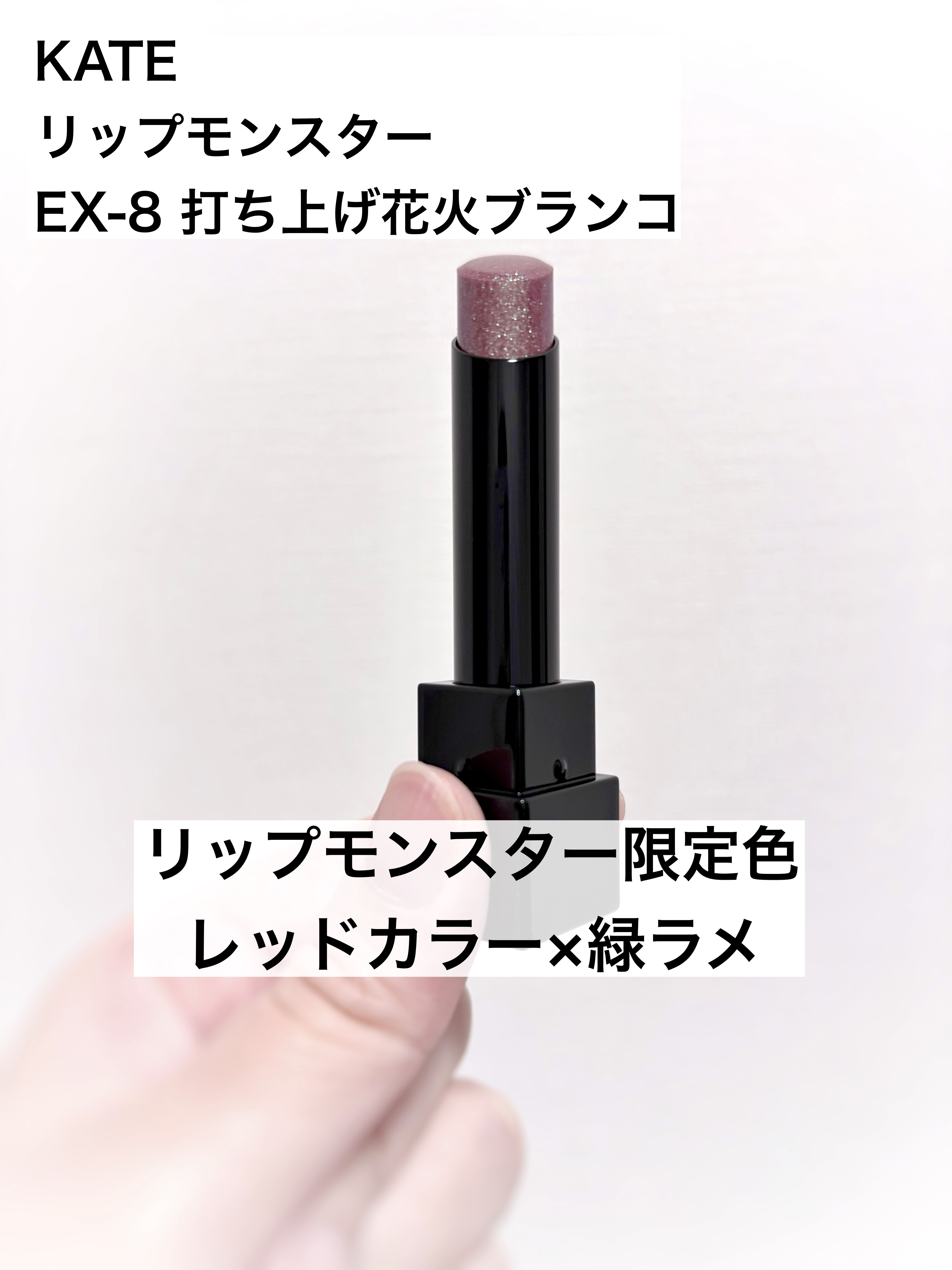 5/24限定発売!ケイトリップモンスターEX-6ロケット花火流星群EX-7100万発の線香花火EX-8打ち上げ花火ブランコ¥1,540〜手に塗った時よりも唇に塗ると派手というよりもすごく上品に煌めく感じがとても可愛い💖他のリップに重ねる塗り方...