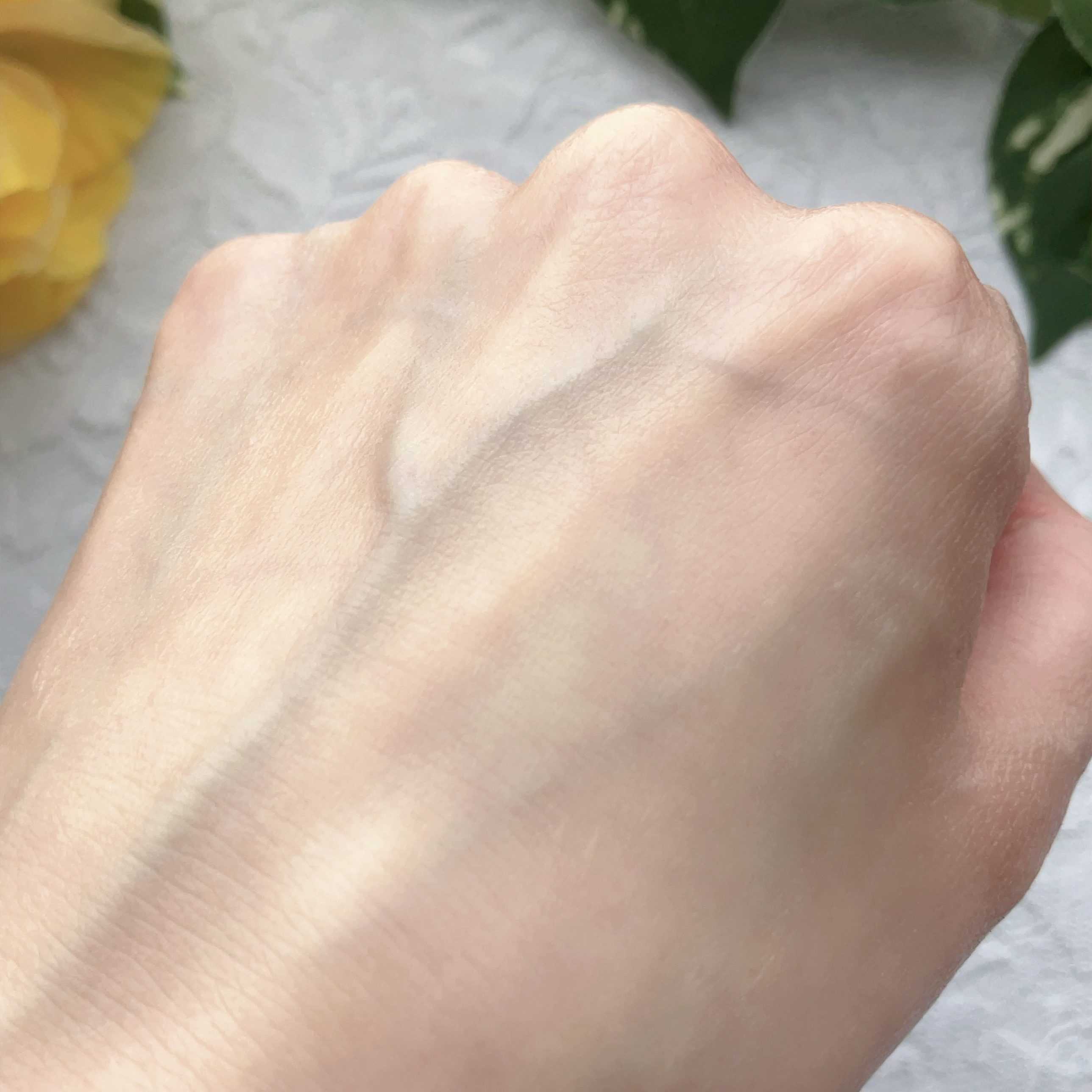 さらさらで伸びが良いテクスチャー。 肌への密着感もあって、ピンクベージュの色みが毛穴のカバーとほんんのりトーンアップも。 クリームのようなテクスチャー。 肌にのせすぎると白っぽくなるので、少しずつ伸ばすのが◎ なめらかテクスチャー。 細かいパールが入ってますが、ギラギラしたりもなく自然な感じ。