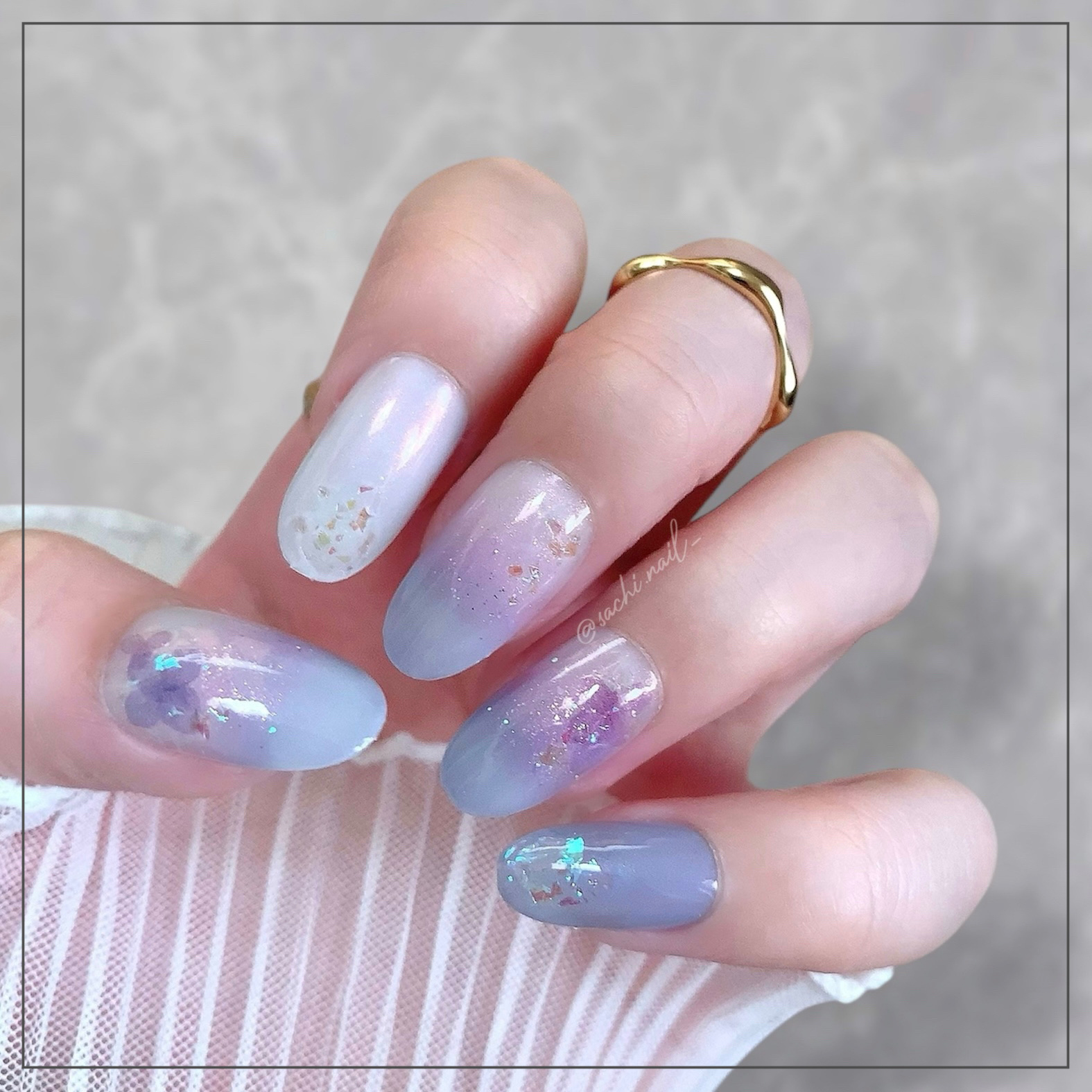 おとぎの国の儚げアジサイネイルが素敵ですね🥰 Sachiさんの美白で綺麗な指がさらに素敵さを高めているようですね😍