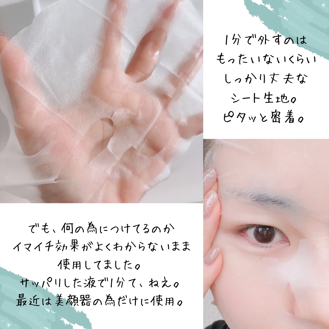 | 薄いシートにさらさら〜の美容液がたっぷり!ぽたぽた少し垂れるぐらい ベタつかずさっぱり潤ってくれる! | 詳細を見る |