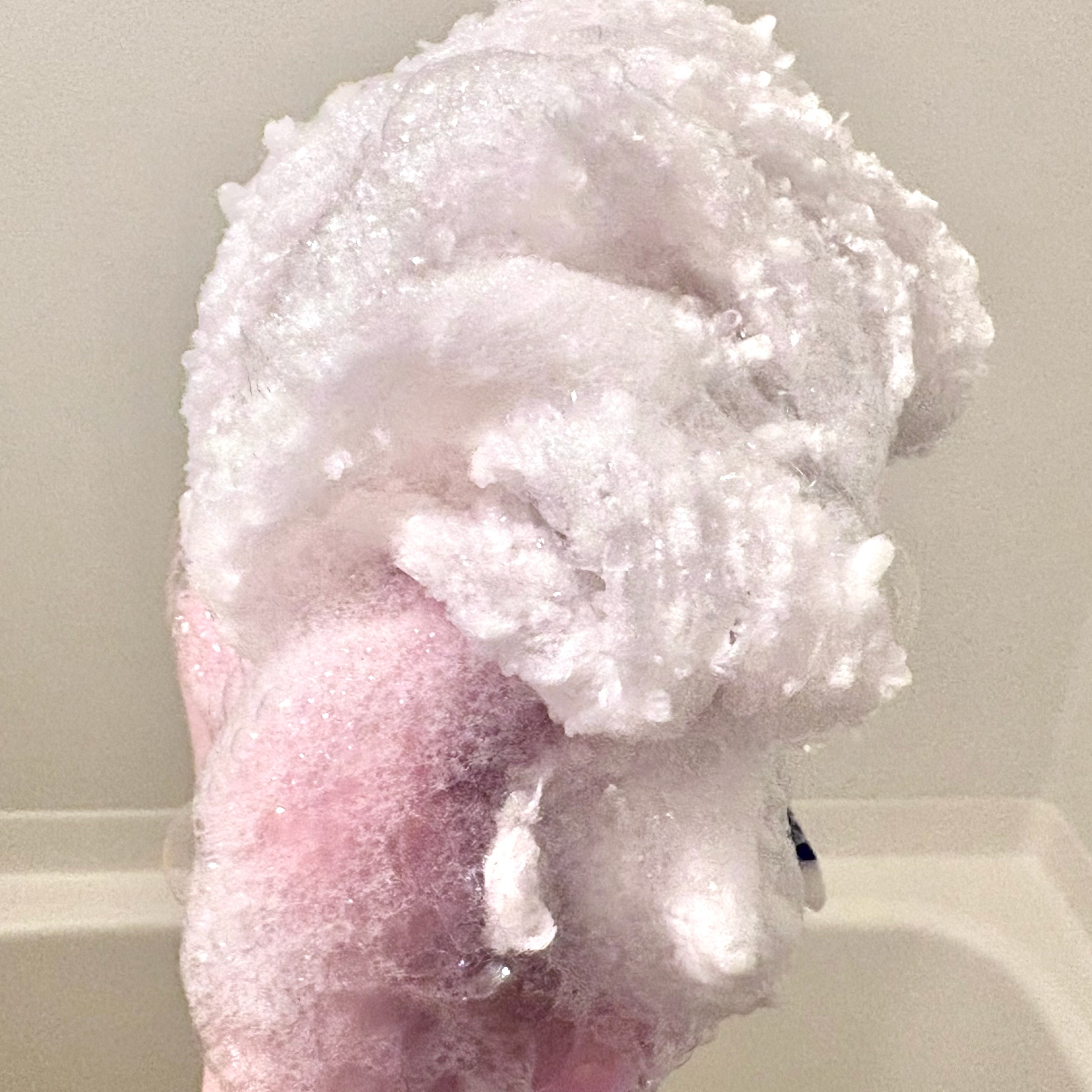 シャンプーはノンシリコーン処方で、アミノ酸系洗浄成分のとろふわスフレ泡🛁✨ コンディショナーはシルキーオイル配合でなめらかな手触りに! ピンクの可愛いデザインに気分上がる🌸