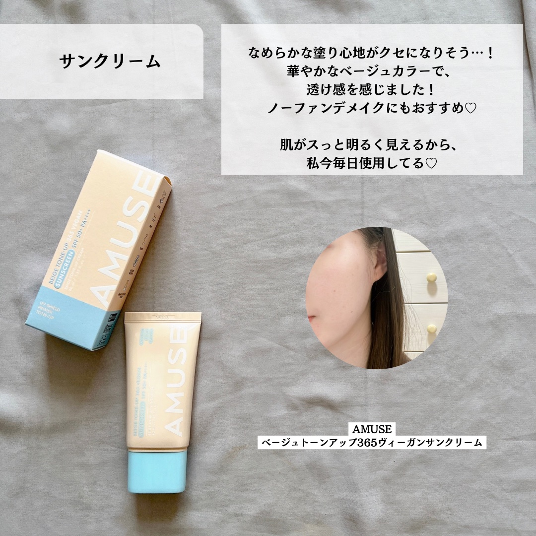 🩷AMUSE🩷••∙☀️∙••#ベージュトーンアップ365ヴィーガンサンクリーム••∙🌺∙••ノーファンデメイクにもおすすめ💕キメを整えナチュラルトーンアップ✨紫外線だけでなくスマホなどのブルーライトまで強力ブロックしてくれるAMUSEのヴィ...