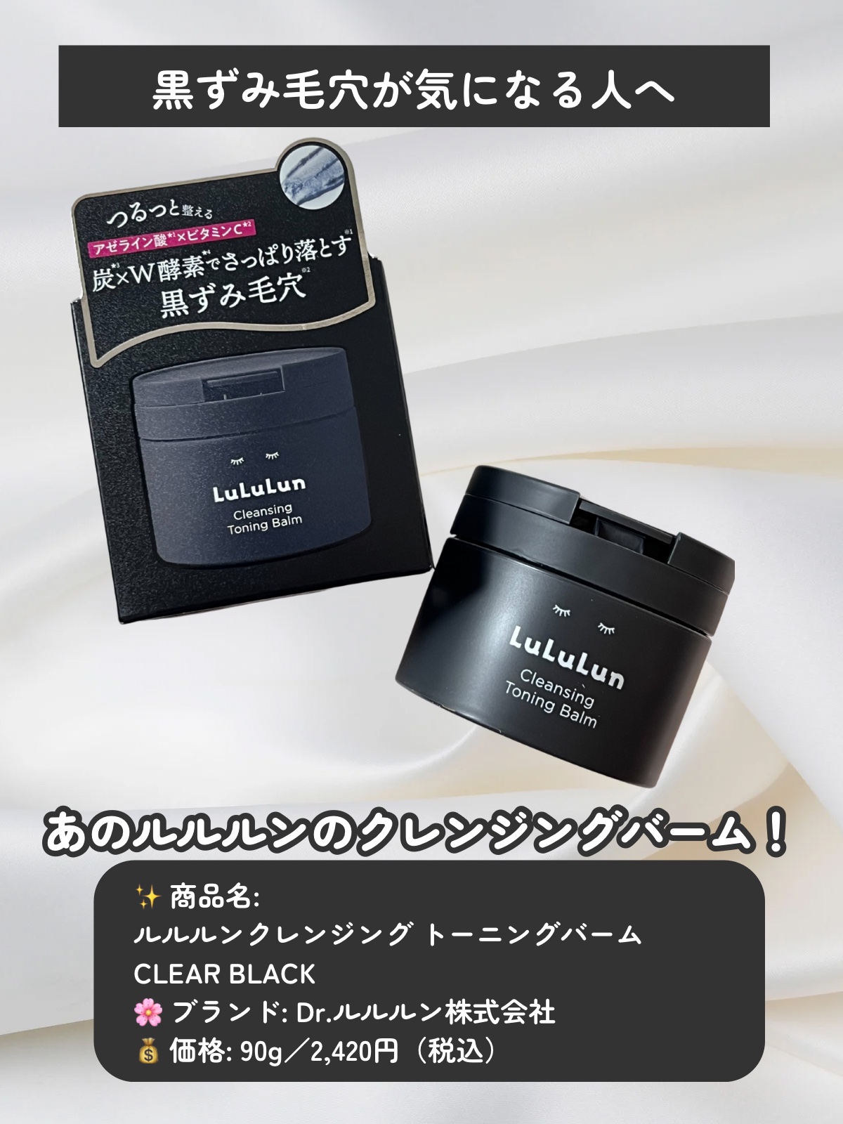 Dr.ルルルン株式会社様に商品を提供いただきました。【ルルルンクレンジングトーニングバームCLEARBLACK】黒ずみ毛穴が気になる肌へ💡炭※1×W酵素※2でごっそり落とす!!マツエクOK🙆♀️W洗顔不要🙅♀️濃いめのメイクやがっつりマス...