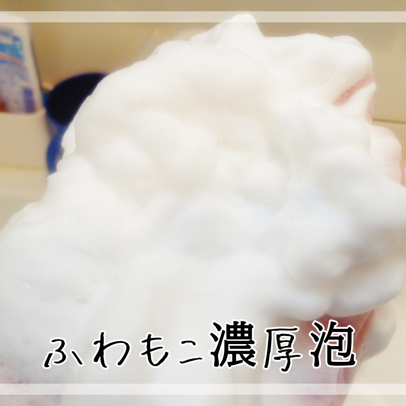 使用感:汚れをすっきり洗い落として、つっぱりがちな肌も、しっとりとした洗い上がりに。 「ビタミンE誘導体*9」配合。洗顔後の肌を守り、肌荒れを防ぐ”特濃もっちり泡”が特徴。 テクスチャーはこてっとした感じのクリームです。
