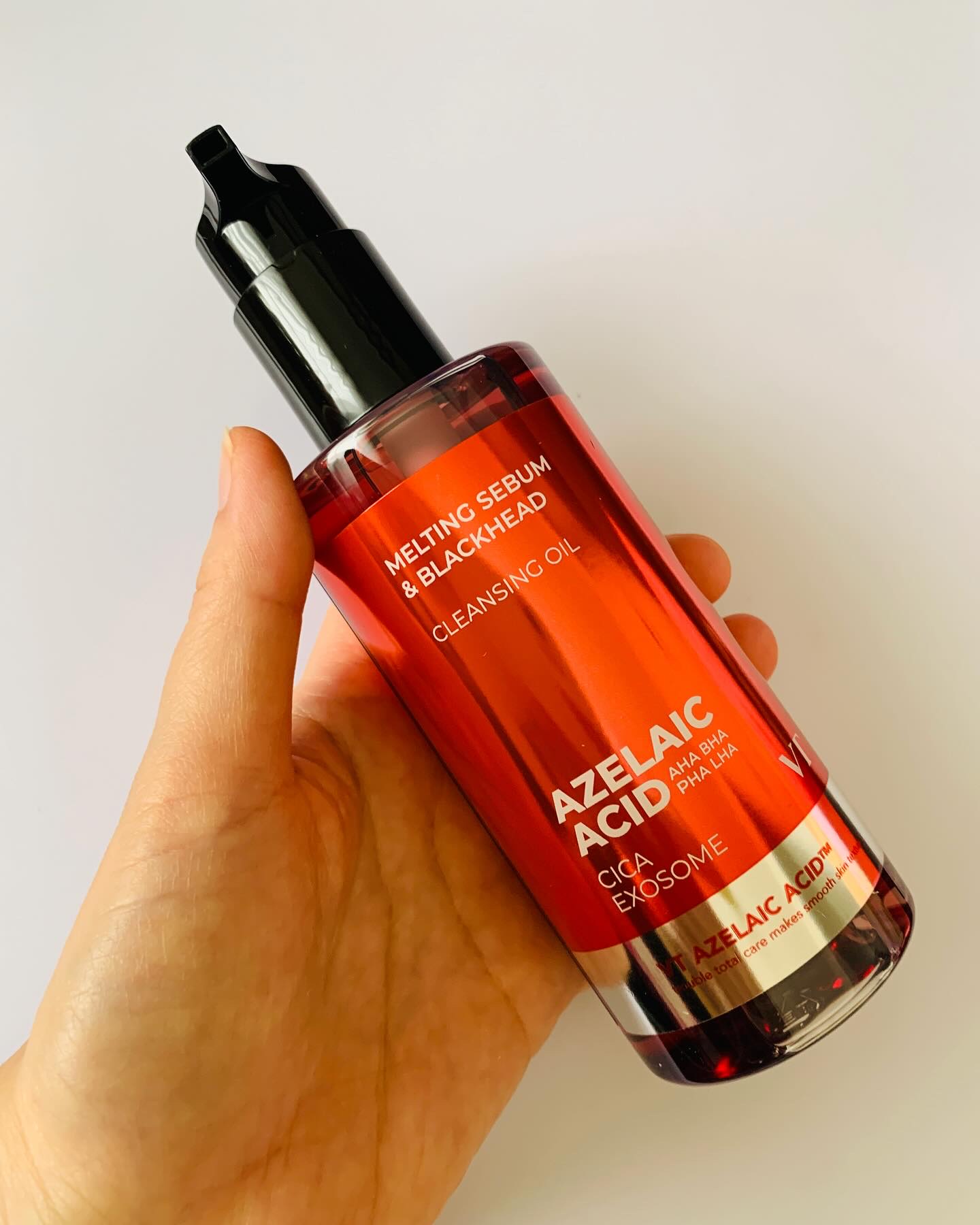 - 最近話題の毛穴ケア・整肌成分アゼライン酸!VTからはクレンジングオイルが登場! ポイントメイクまで落とすしっかりした洗浄力で、毛穴・皮脂までケアし保湿まで叶える一石三鳥アゼライン酸クレンジングオイル。 19種の植物性オイル*1も配合で、目に見えるブラッドヘッド*2から、隠れているホワイトヘッド*2、皮脂まですっきりケアします! ダブル洗顔不要! ※パッケージリニューアル ■このような方へおすすめ メイク・毛穴までディープクレンジング求める方 クレンジングでスキンケアまで行いたい方 ツッパリ感の少ないクレンジングを探していた方 ブラックヘッド*ケアも行いたい方 *1ダイズ油、アルガニアスピノサ核油、ユズ果実油、コメヌカ油、オタネニンジン種子油、アーモンド油、ザクロ種子油、リンゴ種子油、ホホバ種子油、ツバキ種子油、、バオバブ種子油、ユチャ種子油、ベニバナ種子油、ヒマワリ種子油、ヒポファエラムノイデス油、オリーブ果実油、アボカド油、アンズ核油、クロフサスグリ種子油(いずれも保湿) *2古い角質による