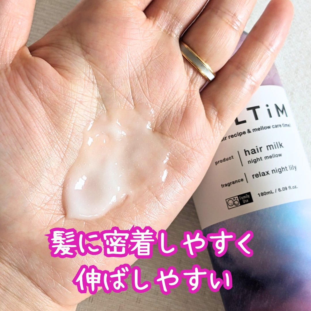 MELTiMナイトメロウシャンプー/トリートメントシャンプーはもっちりとした泡が特徴洗い流した感じとかは普通トリートメントは固めでプッシュするのがかなり重いリラックスナイトリリーの香り香り自体は結構いいとは思うんだけど私はこの香りがちょっと苦...