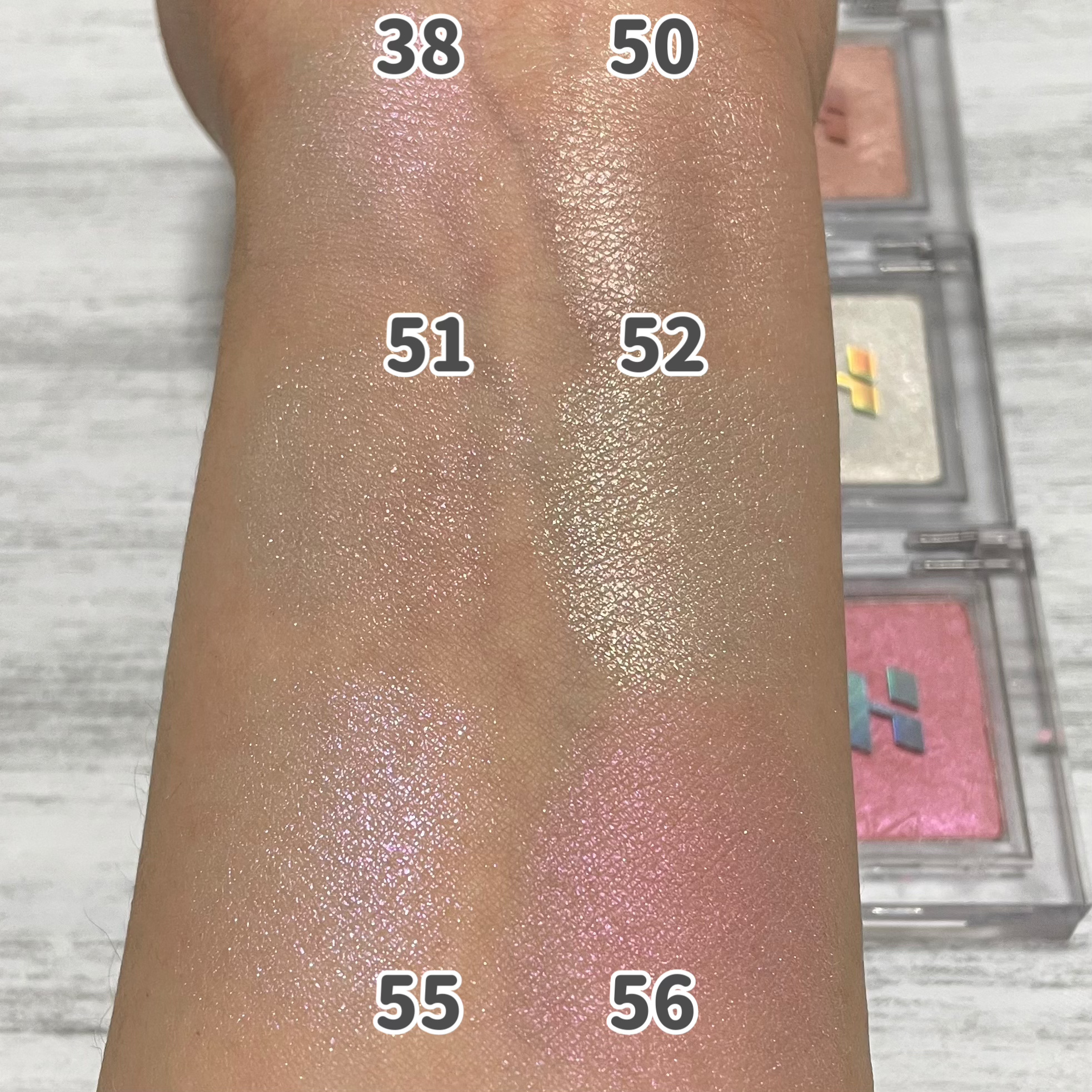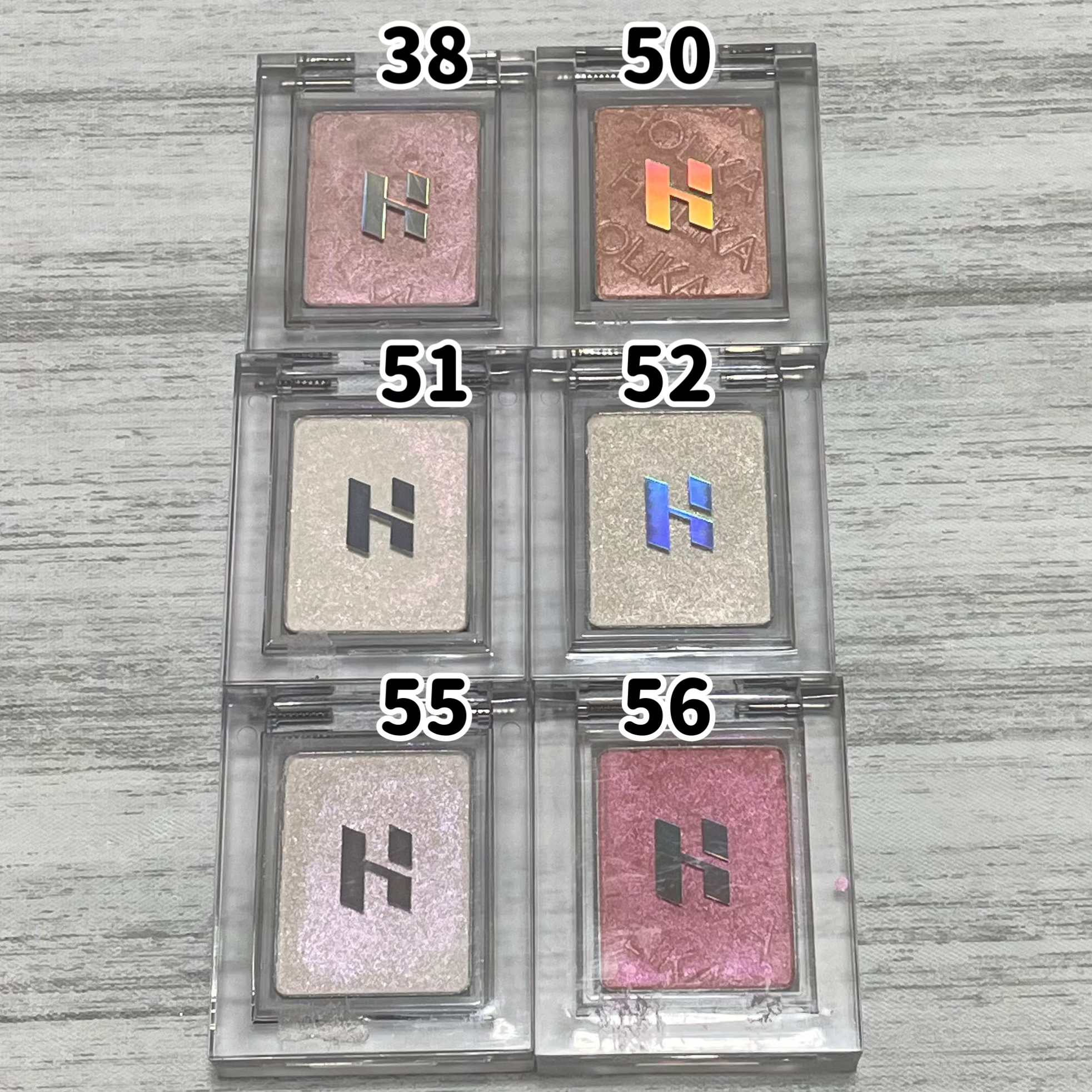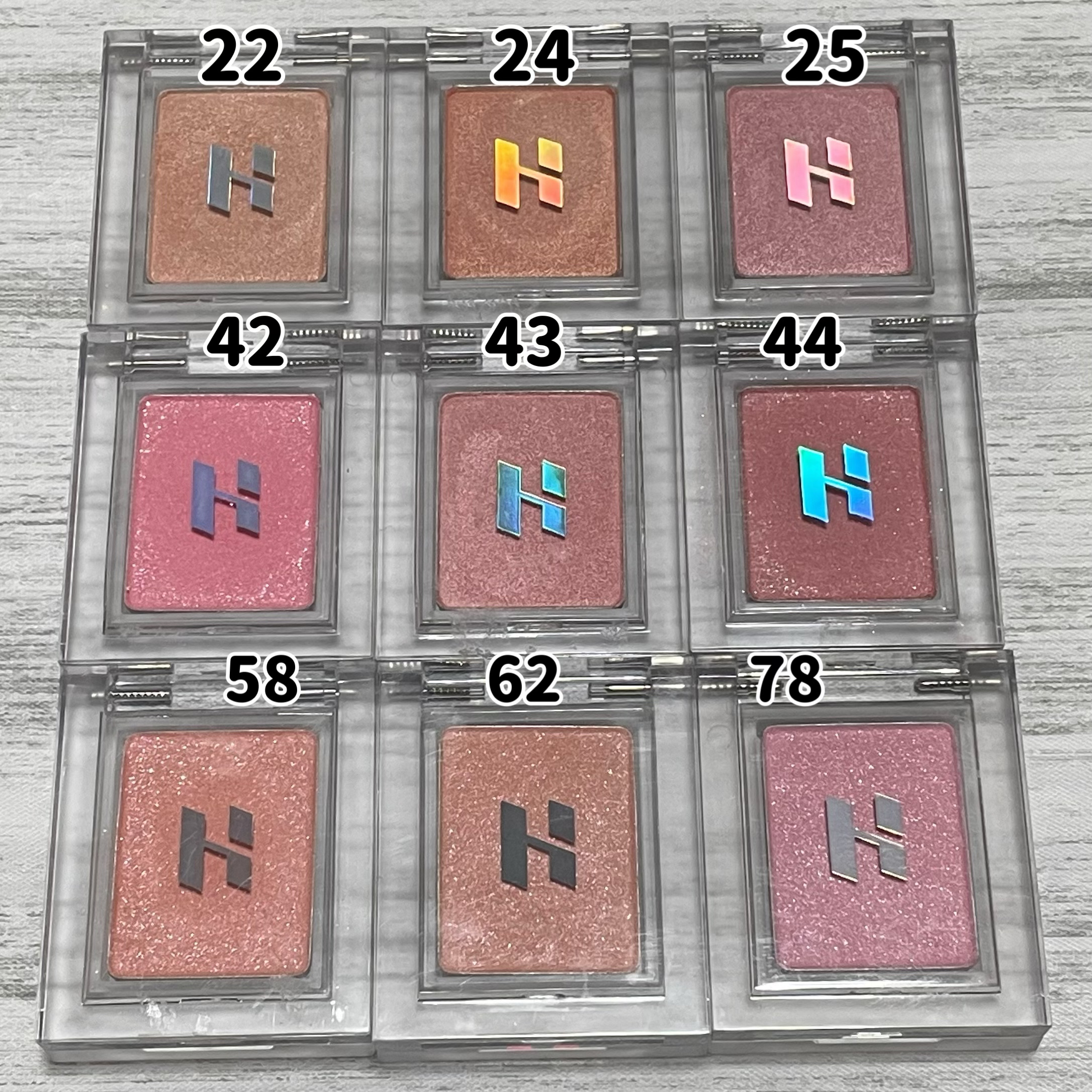 ホリカホリカの単色アイシャドウ。買い足して19色になりました🌼 メガ割だとかなりお得に買えるので、ついつい集めたくなります💕 02PINKID マット。ほんのりピンクのベージュ系。ベースにぴったり。ベースカラー探している方に推したいカラー💕 38 PINK ATTENTION 繊細なラメ。偏光パールのように輝くピンクトーンのハイライト。かなりキラキラするので、つけすぎ注意⚠️ちょんとつけるのが可愛い😍