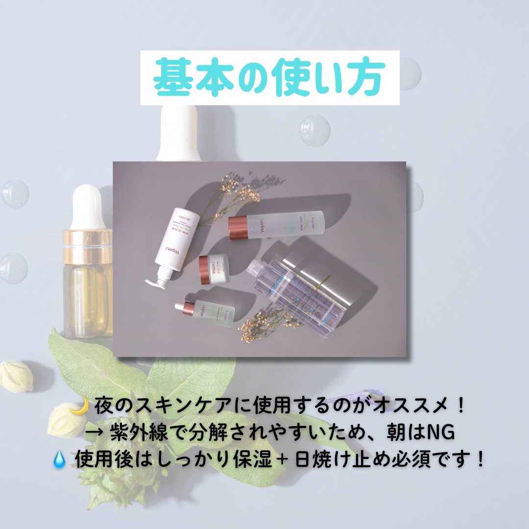 Qoo10で1位を獲った人気セラム!👏✨ インスタやYoutubeでも度々紹介されてるよね! ヴィーガンリポソームレチノールが3%配合! ただし、純粋なリポソームの量は0.1%! 低刺激や肌のハリケアにはとても良かったので、レチノール初心者や敏感肌の人は、まずこれを使ってみるのがオススメ‼️