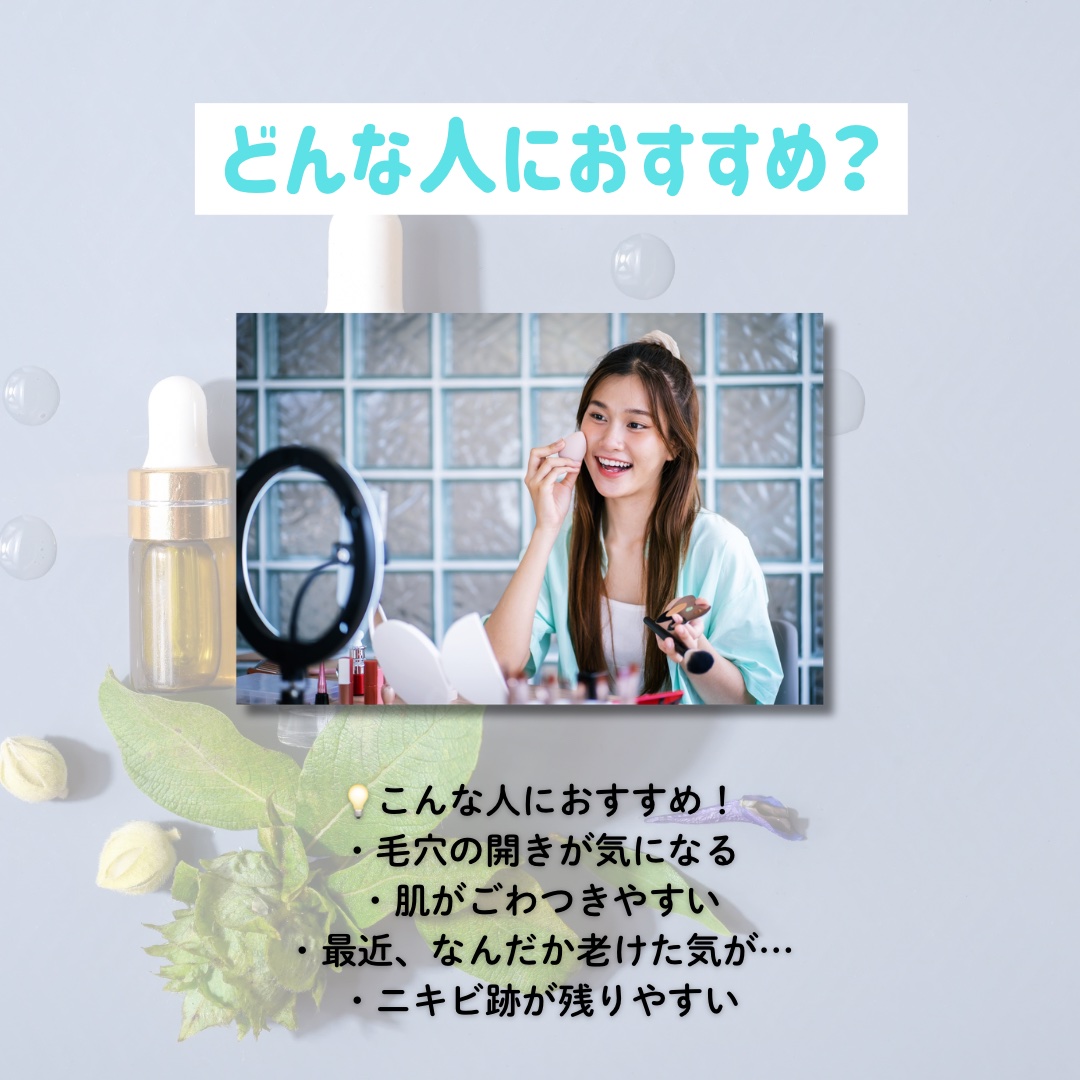 馴染ませた瞬間『あれ?乾燥してた所どこ?』って言うくらい浸透早い🚰 ベタつきが少ないので、美容液特有のベタベタ感はない! ✨オールマイティだから、色んな肌質の人でもおすすめ!