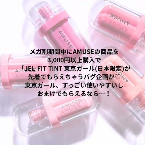 \6月のメガ割おすすめリップ/むっちりとしたジェリーツヤ&発色が可愛すぎる!AMUSEのティントリップ💄メガ割期間中にアミューズ商品を3,000円以上購入すると、ジェルフィットティントの日本限定カラー【東京ガール】現品が先着で貰えちゃうんだと...