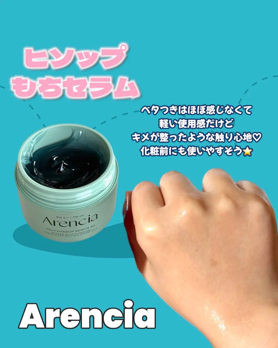 アレンシアヒソップもちセラムビタミンA、C、Eが豊富なヒソップエキスを配合したナイトセラムです✨️ハリのある明るいお肌へと導くペプチド成分配合。シワ、美白、くすみの3大エイジング悩みに特化🙌洗顔後、スキンケアの第1段階で適量を手に取り顔にまん...