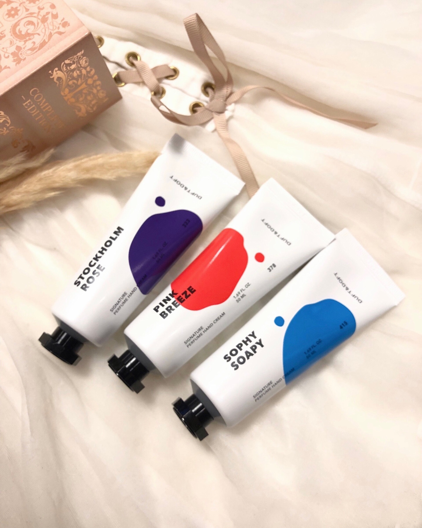 皆さま〜香水とハンドクリームすきにはたまらないアイテム発見したわよ💡韓国パフュームアイテム系No.1ブランドDUFT&DOFTダフト&ドフトさまよりシグネチャーパフュームハンドクリーム全6種の中からしのちチョイス!・ピンクブリーズ淡いピンク色...