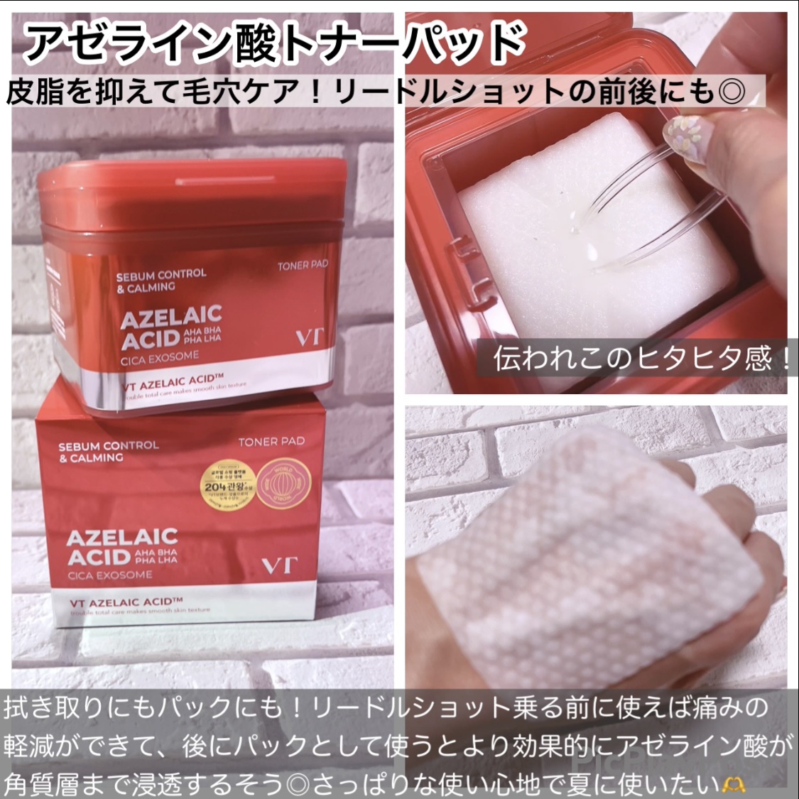 アゼライン酸クレンジングオイルで洗顔後、トナーパッドでふき取りorトナーパック! ブラックヘッド、ホワイトヘッド、皮脂までクレンジング! さらさらしたテクスチャーです。 1枚で皮脂を抑えて、毛穴ケアまで! お守りトナーパッド❣️