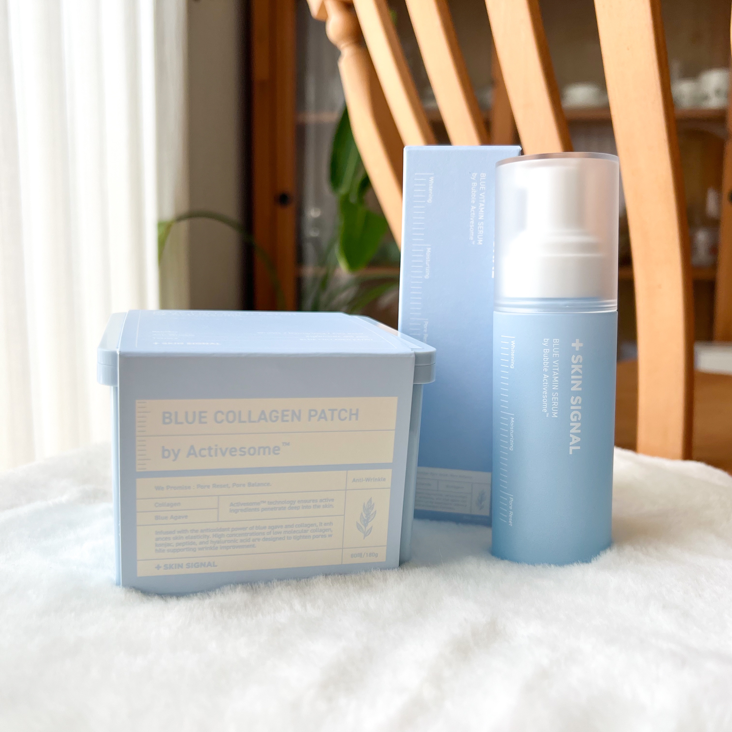 ✴︎SKINSIGNALブルービタミンバブルセラムブルーコラーゲンパッチスキンシグナルの新作スキンケア2種を使用させていただきました。☑︎ブルービタミンバブルセラム泡で出てくるタイプのセラム。保湿するだけでなく毛穴やシワなどにアプローチ。ナイ...