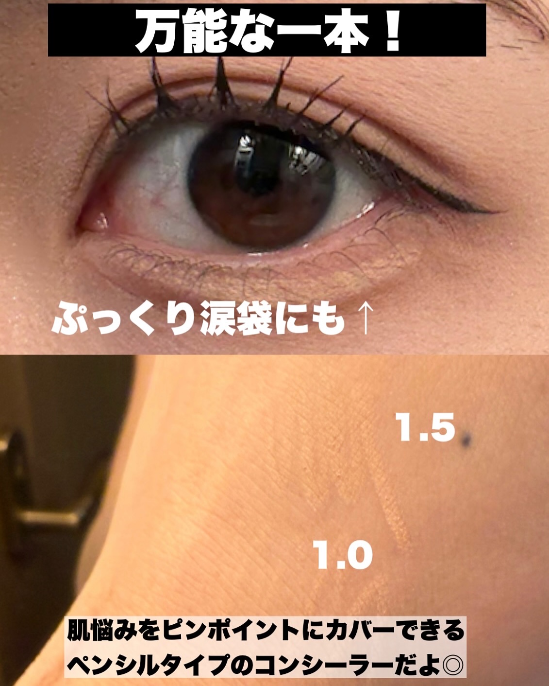 - ホクロやニキビ跡など極小部位のカバーに特化したペンシルタイプのコンシーラー。 肌カバーだけでなく涙袋メイク、ポイントメイク直しにも! ※パッケージ順次リニューアル。尚、これにかかる商品の返品・交換は承っておりません。