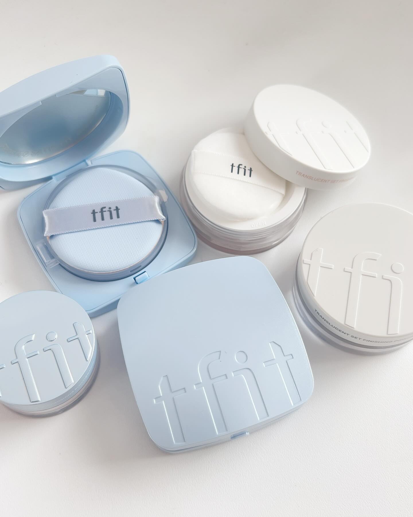 \夏目前‼︎皮脂強ベースメイクはコレだ‼︎/『tfit』・トランスルーセントセットフィニッシングパウダーホワイト・トランスルーセントセットフィニッシングパウダースキンベージュ・アイシーフィットカバークッションEXポースリン・アイシーフィットカ...