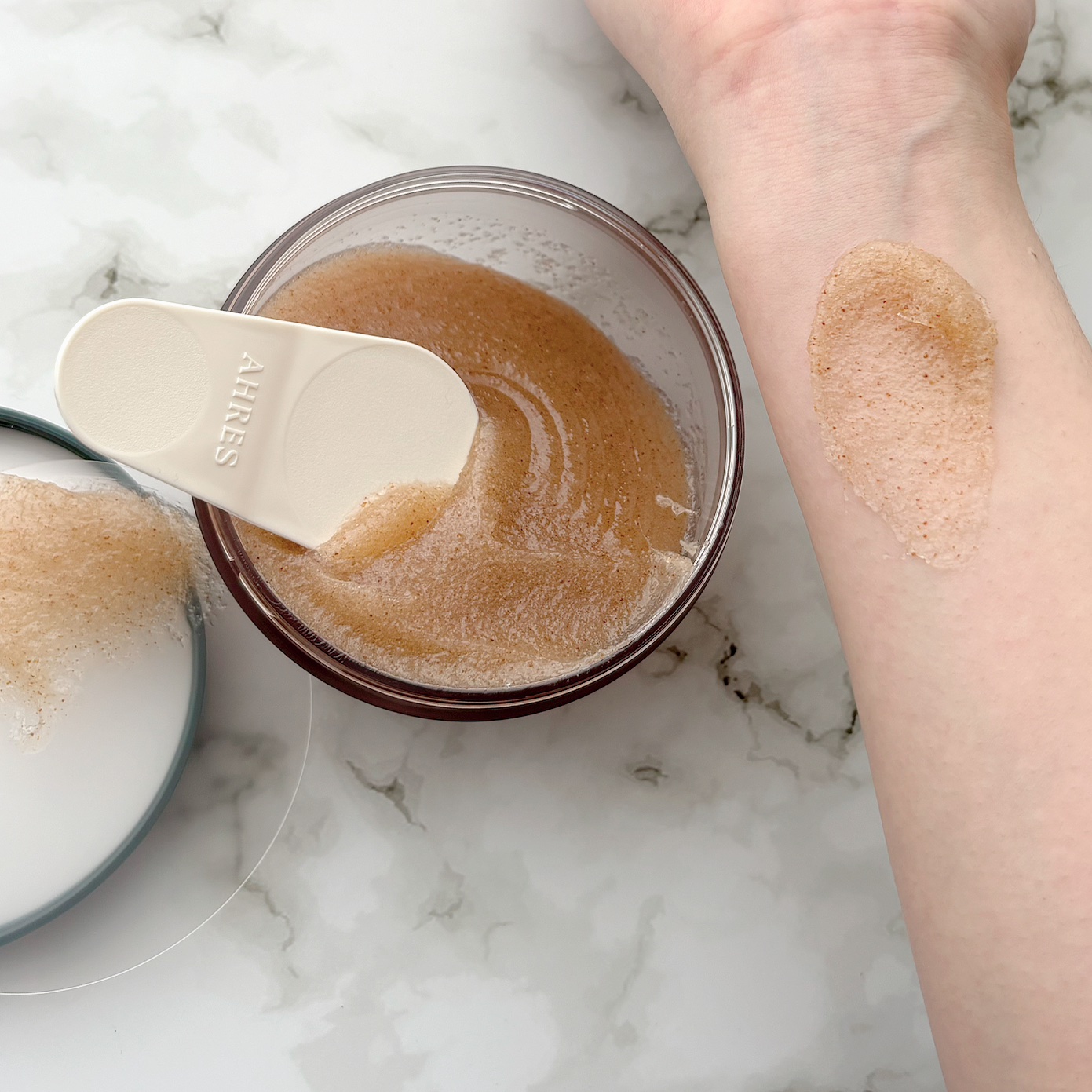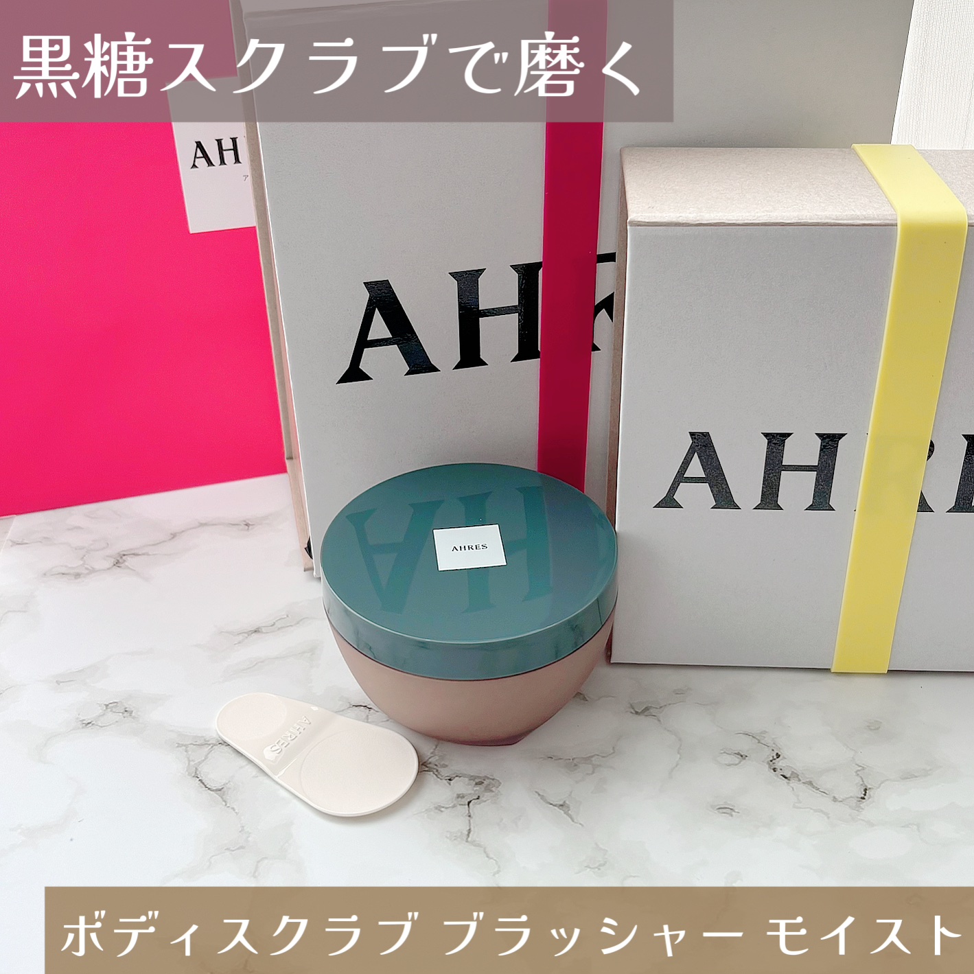 AHRES(アーレス) BodyScrubBrusherMoist(ボディスクラブブラッシャーモイスト)を使ってみました♡\黒糖スクラブで磨く、もっちりボディ✨/沖縄産黒糖※1を配合した、シュガー※2のボディ用スクラブです♥アンズの種子※3を...