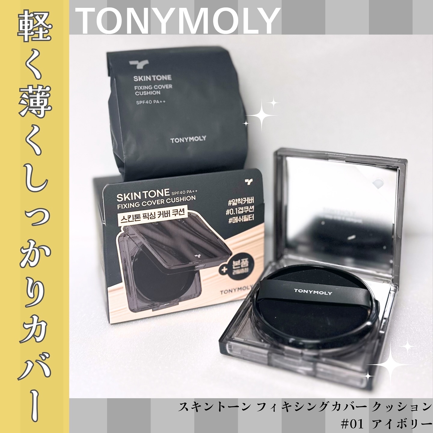 【ファンデ】TONYMOLY スキントーンフィッシングカバークッション薄く塗れるのにカバーしてくれるファンデ♡スキントーンフィクシングカバークッションSPF40PA++ 3色展開00ポーセリン ☆使用色01アイボリー02ベージュメッシュフィル...