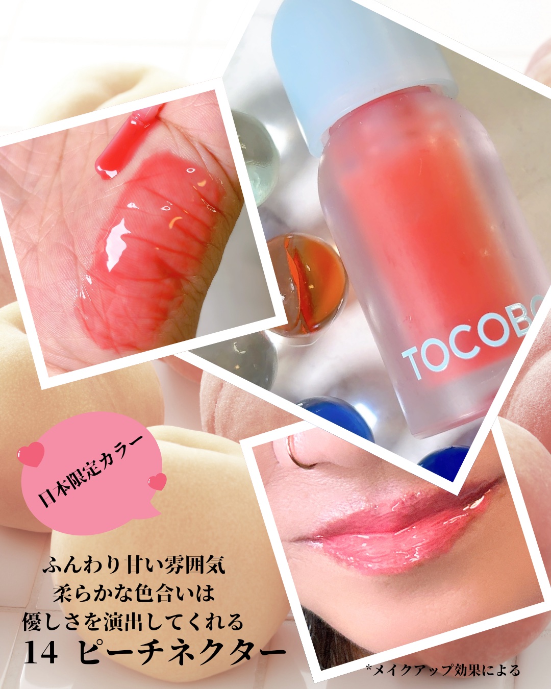 トコボジューシーベリープランピングリップオイル03ブラックチェリー、14ピーチネクターをお試しさせていただきました。毎日使うほど大好きなトコボのリップオイル。カラーバリエーションが豊富なので、毎日気分に合わせて使っています。ジューシーでなめら...