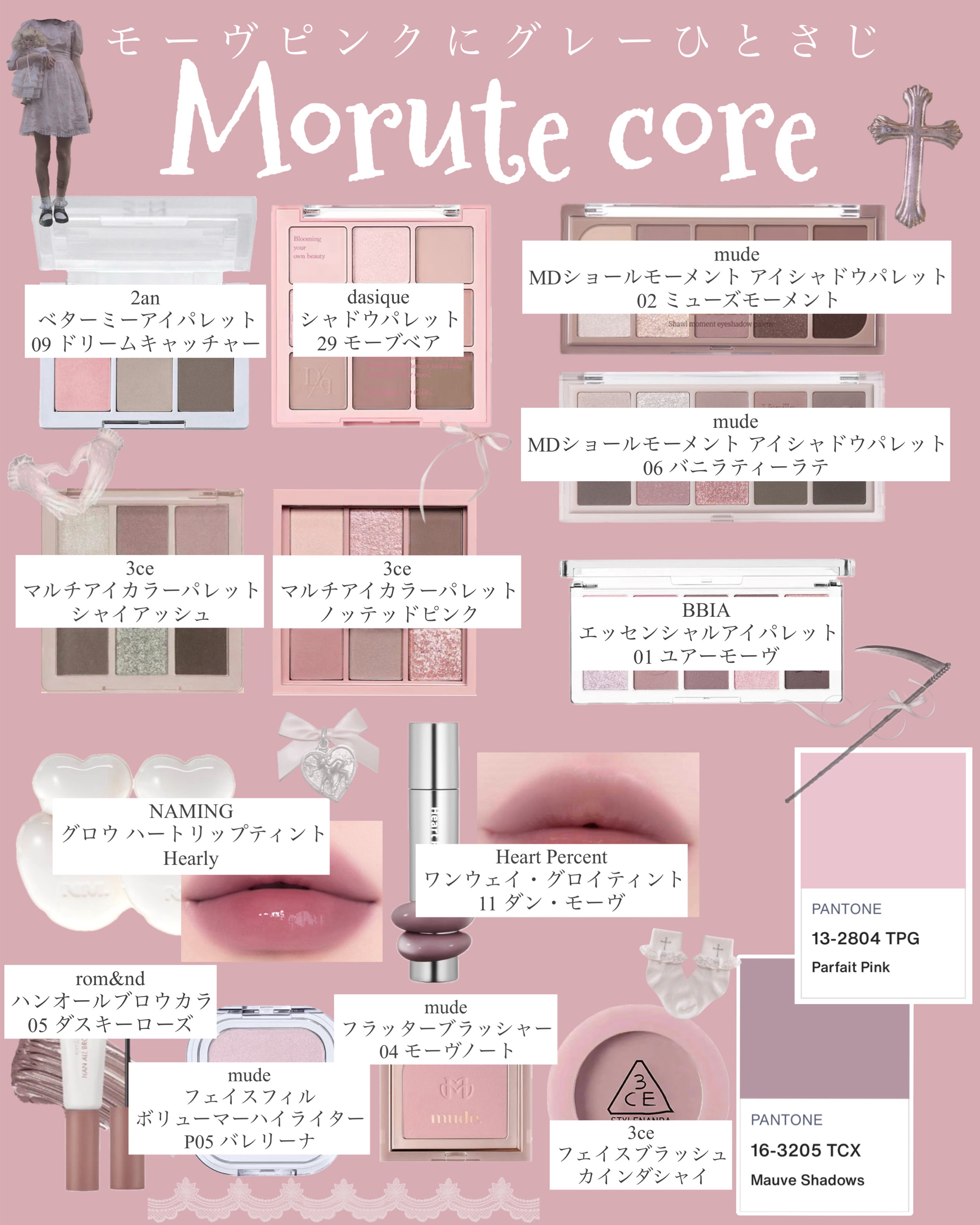 \秋のブルベ垢抜けカラーこれ!!!!🥀/🎀低彩度モーヴピンクまとめ୨୧୨୧ふんわり儚げで上品、“低彩度モーヴピンク”がブルベ秋の最推しカラー🦢💭✔くすみすぎない絶妙な青みで透明感UP🪞✔儚げなのに血色感もちゃんとあるバランス感🩰✔アイ×リップ...