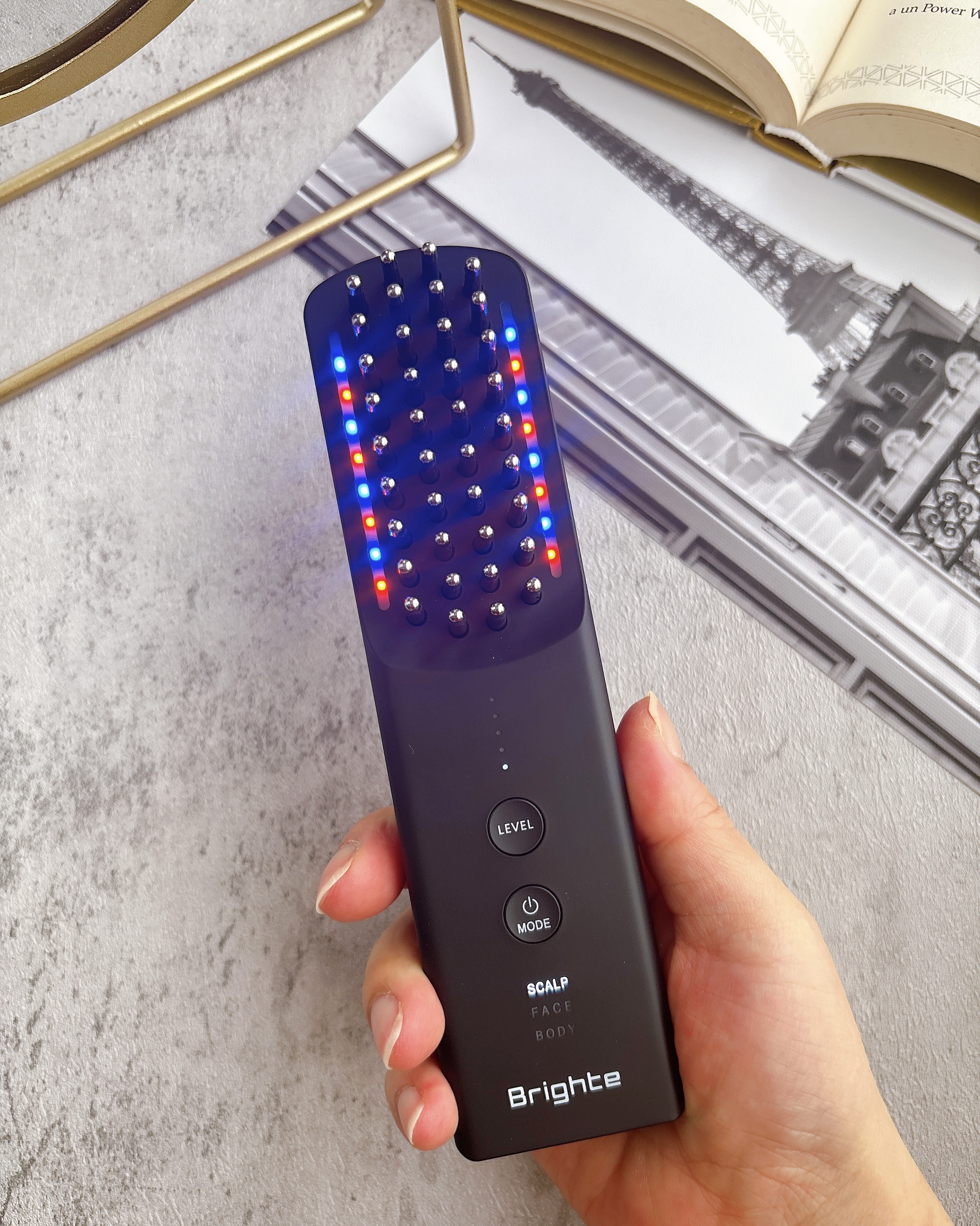 EMS×RF×2色のLEDの力で顔だけでなく頭皮も全身もこれ1台でほぐしてくれるんです☝️ チクチクとした刺激感とじんわりとした温かみがついついクセになります🤭 IPX6(完全防水)なので浴室での使用もOK!