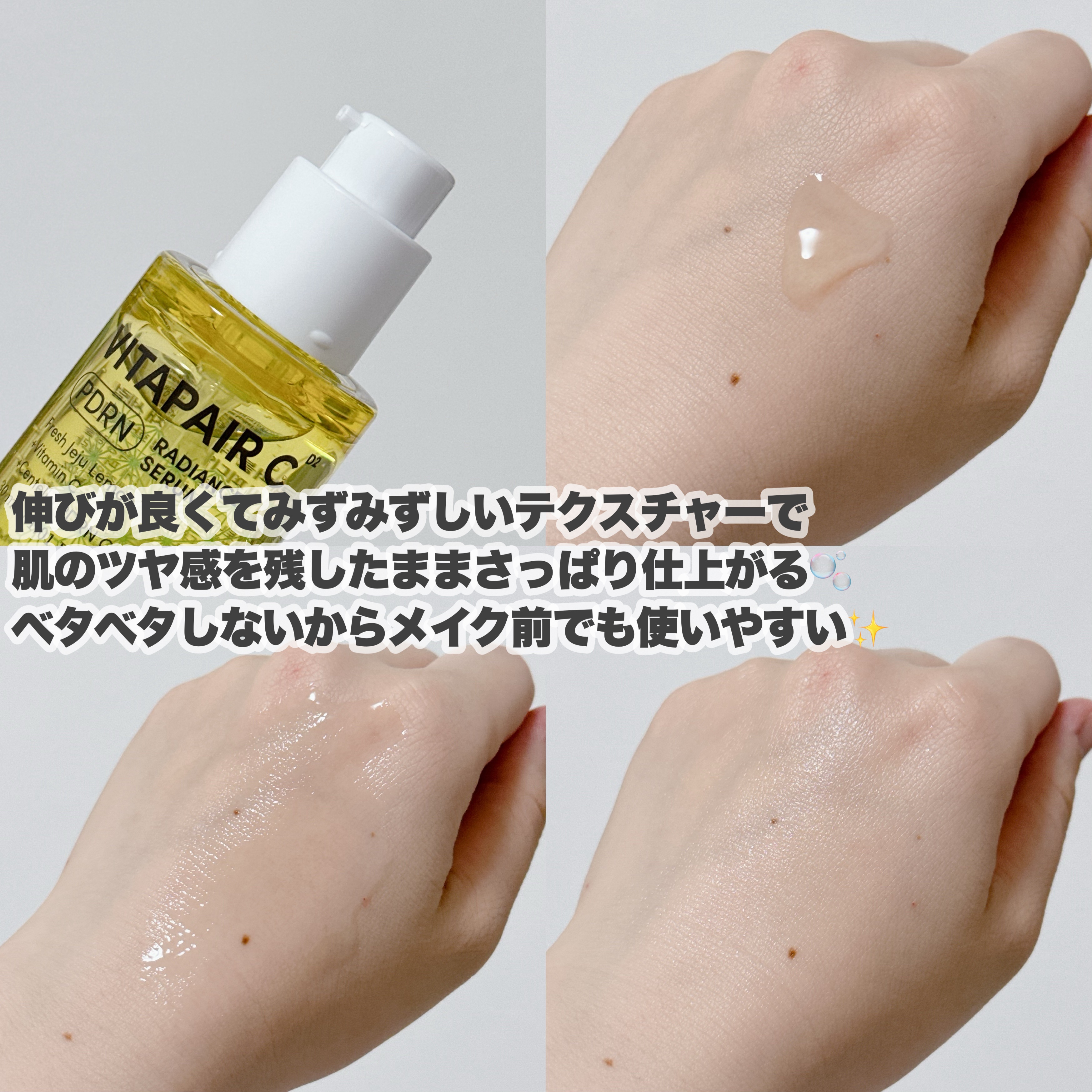 - センテラPDRNとビタミンC成分により敏感肌や荒れたお肌をやさしく鎮静しながら、温泉上がりのような透明感と潤いをプラス。 さらにナイアシンアミドや、済州グリーンレモン水※1でくすみやシミをケアし、健やかな肌へと導きます。 高濃度なスキンケアが苦手な方や敏感肌の方でも毎日使いやすい、デイリーケアにぴったりの低刺激セラムです。 【こんな方におすすめ】 ・お肌のハリや弾力が気になる方 ・敏感肌で高濃度製品を使用することに抵抗がある方 ・毎日続けられて着実にお肌の潤いと弾力ケアができる商品を探している方