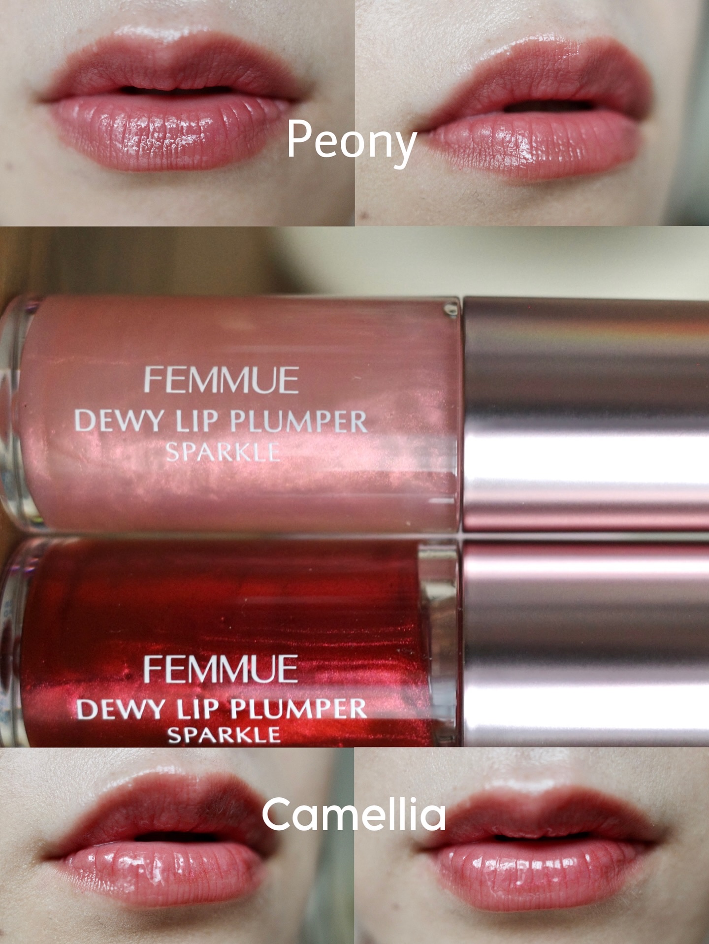 FEMMUEデューイーリッププランパースパークル透け感のある生ツヤリッププランパー🤍ナチュラルなプランプ効果でぷるんとうるおいのある唇に🫶🏻︎💕︎︎ピオニーとカメリアにはパールが入ってるからキラキラでかわいすぎたよ🥹✨#PR#FEMMUE#フ...