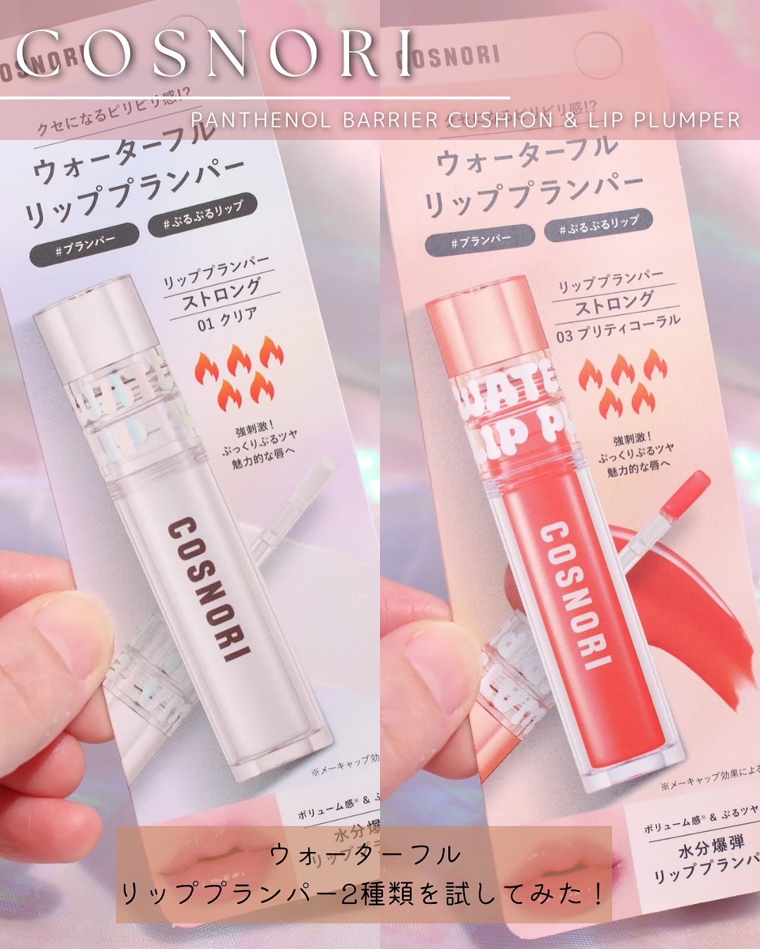COSNORIウォーターフルリッププランパー-ストロング01クリア-ストロング03プリティコーラルパンテノールバリアクッション-00フェアライト✒️ウォーターフルリッププランパーヒアルロン酸を注入したようなボリューム感になれるリッププランパー...