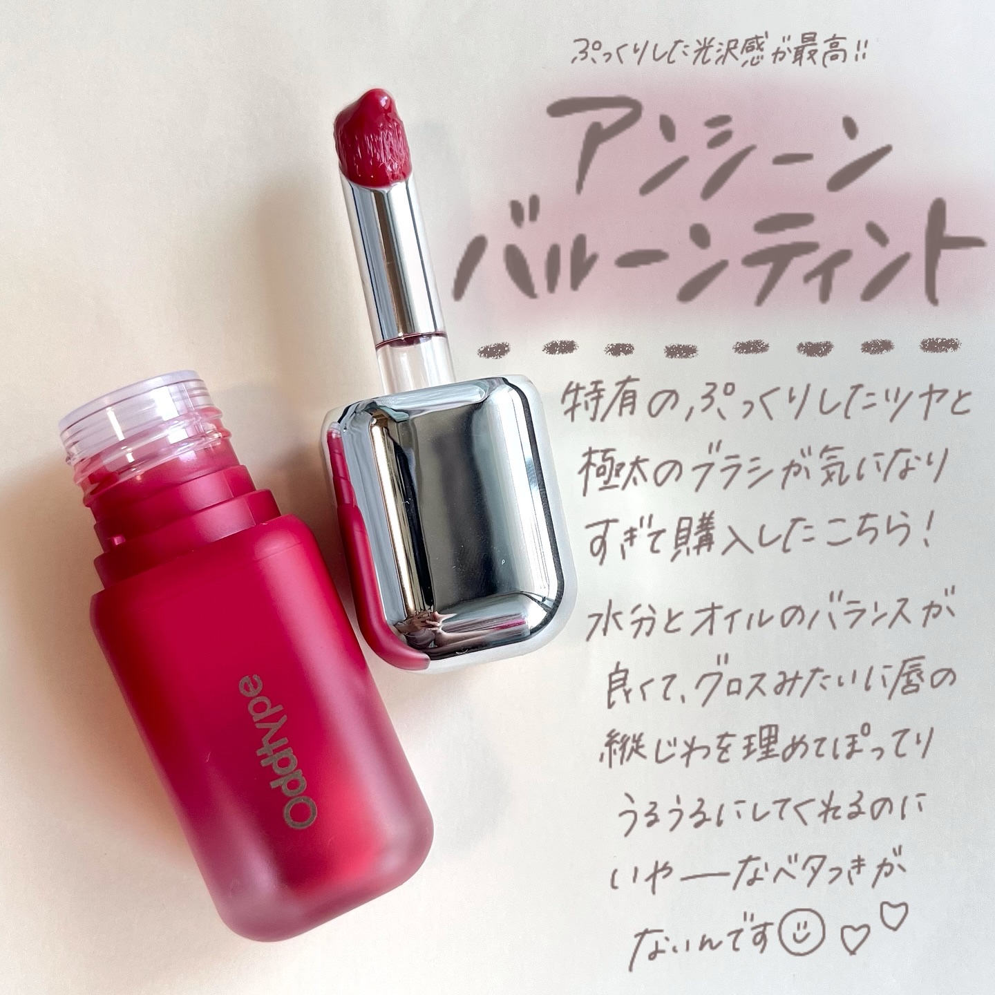 #PRoddtypeとpicky様より頂きました🙏#OddType#オッドタイプ#アンシーンバルーンティント💄✨透け感発色とボリュームのあるぽってり唇にしてくれるツヤティント✨シワや角質を和らげてくれる形状記憶ジェルが配合されているのでボリュ...