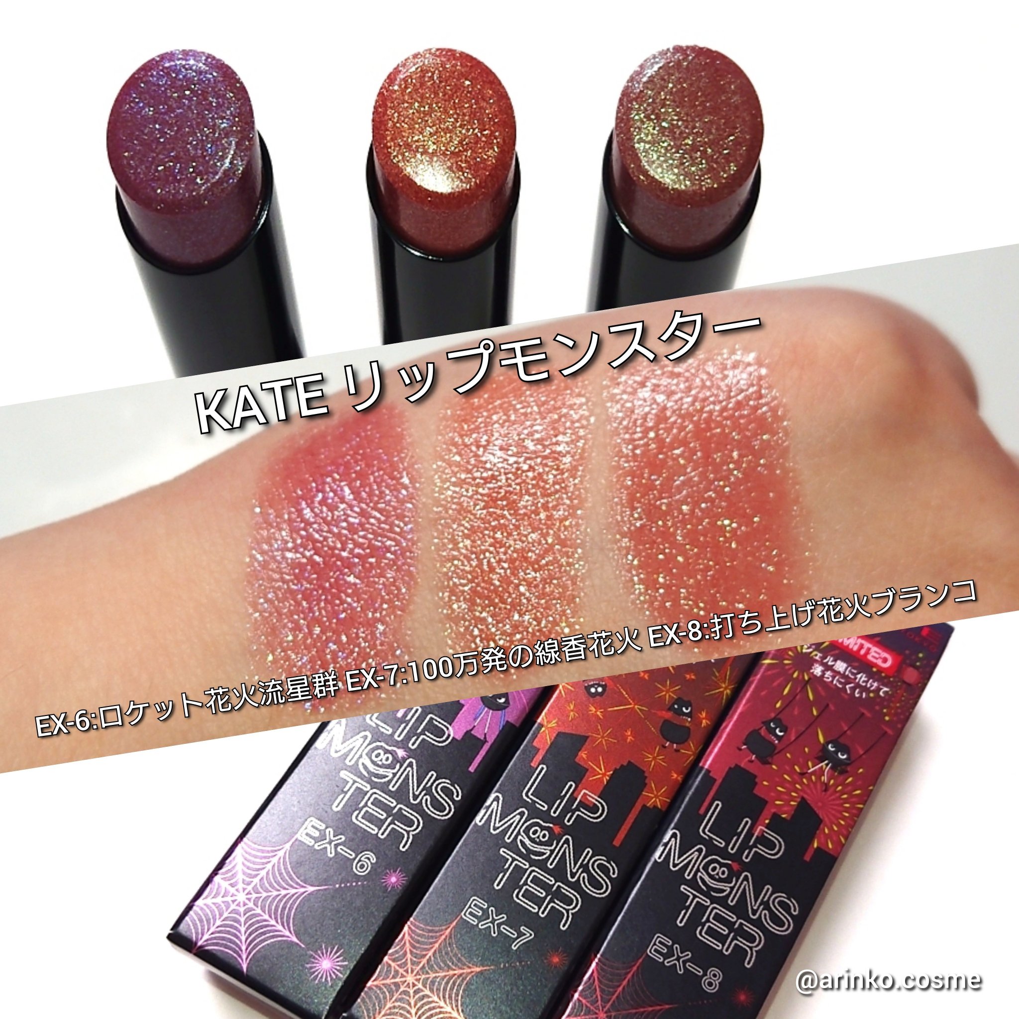 - 落ちにくさも美発色もよくばりたい、つけたての色が長時間持続する人気の口紅リップモンスター。 唇から蒸発する水分を活用して密着ジェル膜に変化する独自技術※で、つけたての色が長時間持続。 高発色&保湿。 ※当社独自の色持ち技術 ■花火のようにまぶしくきらめく 繊細なラメが際立つ限定色 EX-6 ピンクカラー×青ラメ【ロケット花火流星群】 EX-7 オレンジカラー×黄&緑ラメ【100万発の線香花火】 EX-8 レッドカラー×緑ラメ【打ち上げ花火ブランコ】 ■深みレッド系カラーの限定色 EX-9 戦慄の喜笑 (限定色) EX-10 狂気の怒号 (限定色) 【2025クリスマスコフレ】 落ちにくいリップモンスターから、唇の血色感を底上げする ホリデーシーズン限定の熱感ニュアンスベージュ系カラー登場。 EX-11 紅煙宿る贈り物(限定色):ボルドーベージュ系 EX-12 盗まれた1224mの星光(限定色):キャメルベージュ系