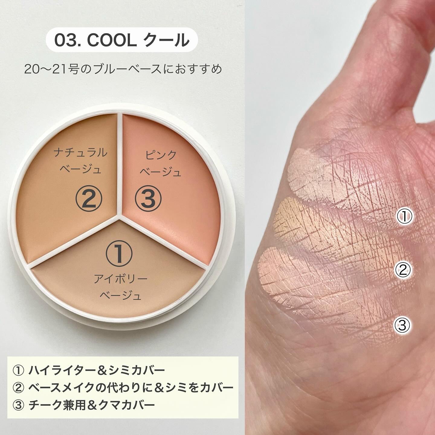 - クマからニキビ跡、シミまでこれ1つでカバー。 3色タイプだからこそ、気になるところや肌色を選ばずにご使用いただけます。 リキッドタイプを圧縮した高濃度バームのため高カバー高密着*¹を実現。 コンシーラーだけでなくコントアとしても使用可能です。 *1メーカー比