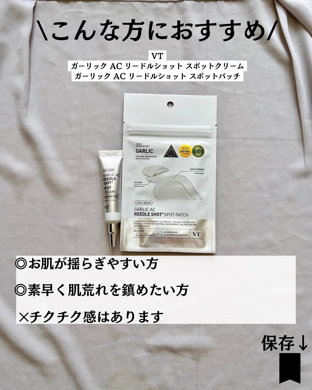 リードルショットが大人気のVT💚新商品のガーリックシリーズには、商品名の通り、ニンニク成分が配合されているんだそう👀💕ニンニクがニキビに良いと海外で話題になっていて気になっていました👏🏻●ガーリックACリードルショットスポットクリーム赤ニキビ...
