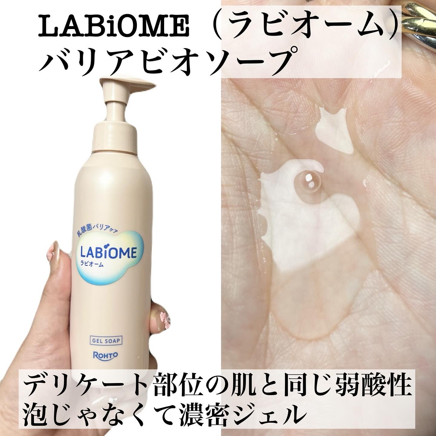 LABiOME(ラビオーム)バリアビオソープ販売名:ラビオームジェルソープ@labiome_official\毎日をもっと心地よく、もっとやさしく。/ロート製薬さんから、デリケートゾーンの肌環境を考え抜いた弱酸性ソープが登場しました。デリケー...