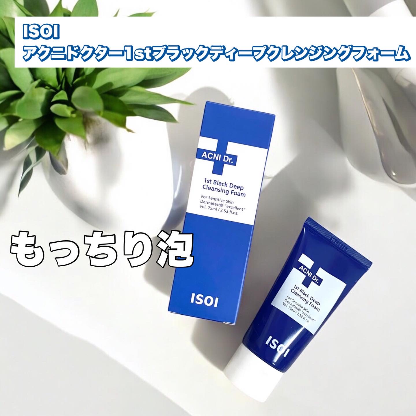 ♡ISOIアクニドクター1stブラックディープクレンジングフォーム@isoi_japanさまのクレンジングフォームですクレイパックのような黒いクレンジングフォームでトラブル肌の原因である過剰な皮脂を炭とカオリンが吸着してくれるそうです基本乾燥...