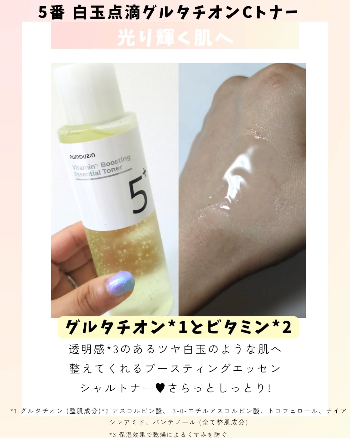 透明感のあるツヤ白玉肌へ💛✨✨️✼••┈┈••✼••┈┈••✼••┈┈••✼••┈┈••✼numbuzin5番白玉グルタチオンC美容液¥2,420✼••┈┈••✼••┈┈••✼••┈┈••✼••┈┈••✼しみ・くすみ・色素沈着すべての痕跡を毎...